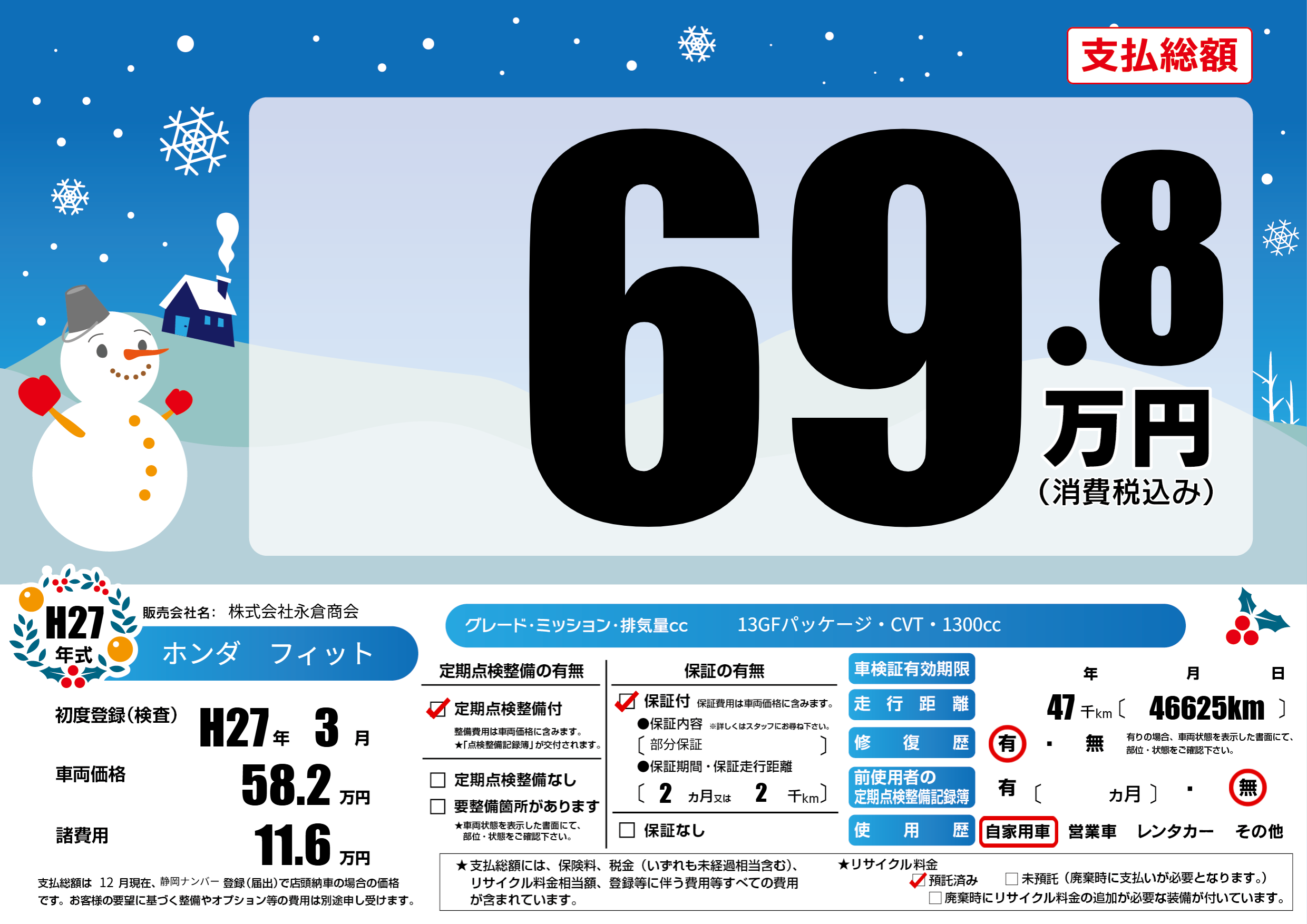 | 走行キロ | 4.7万km | 初年度登録 | H27年3月 |