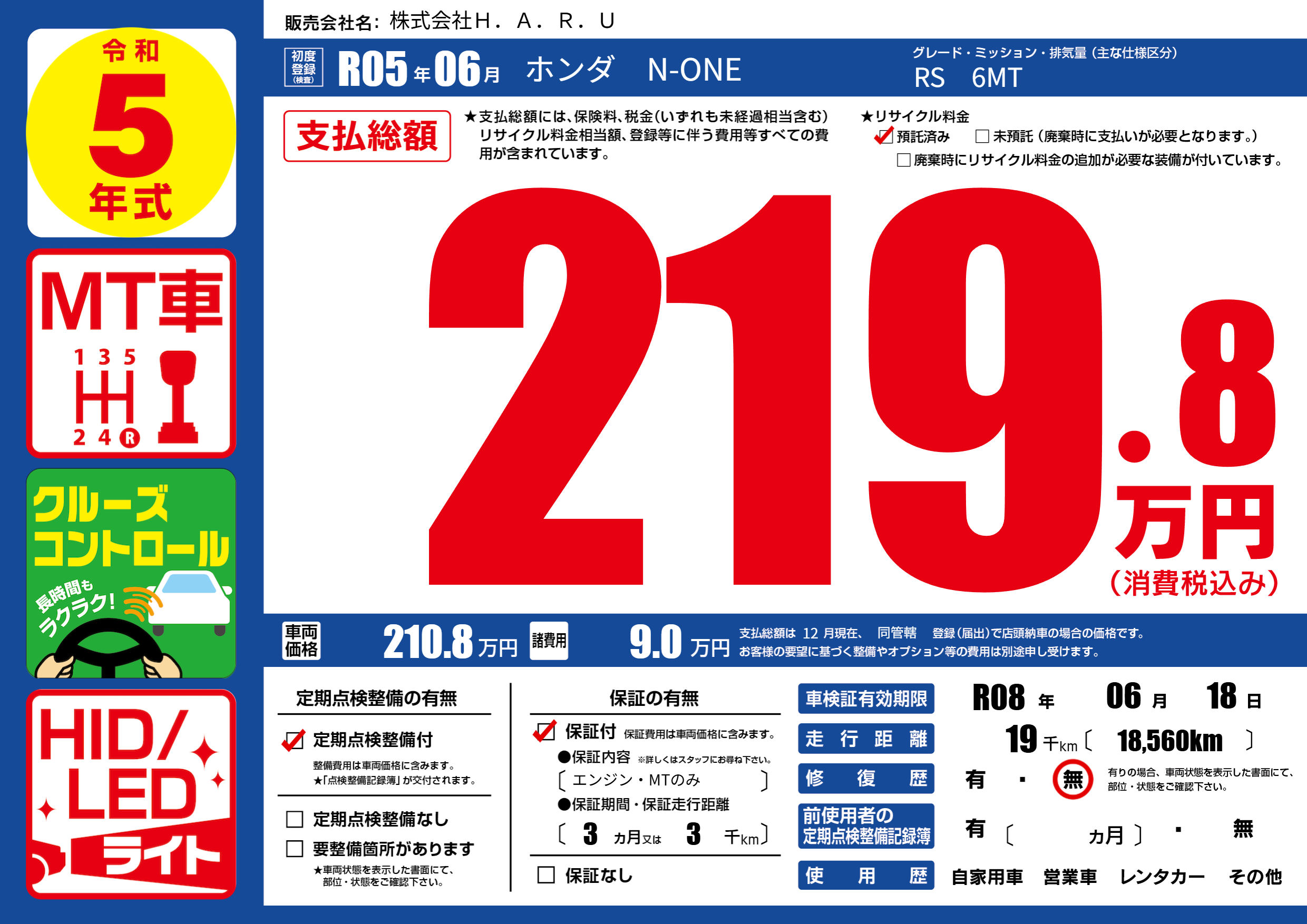 なし | 車検制限 | R08年06月18月 |