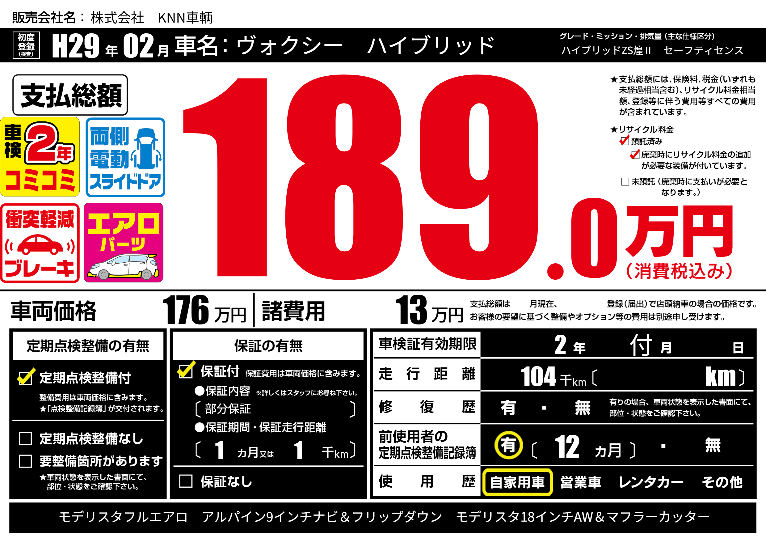 なし | 車検制限 | 2年付月---月 |