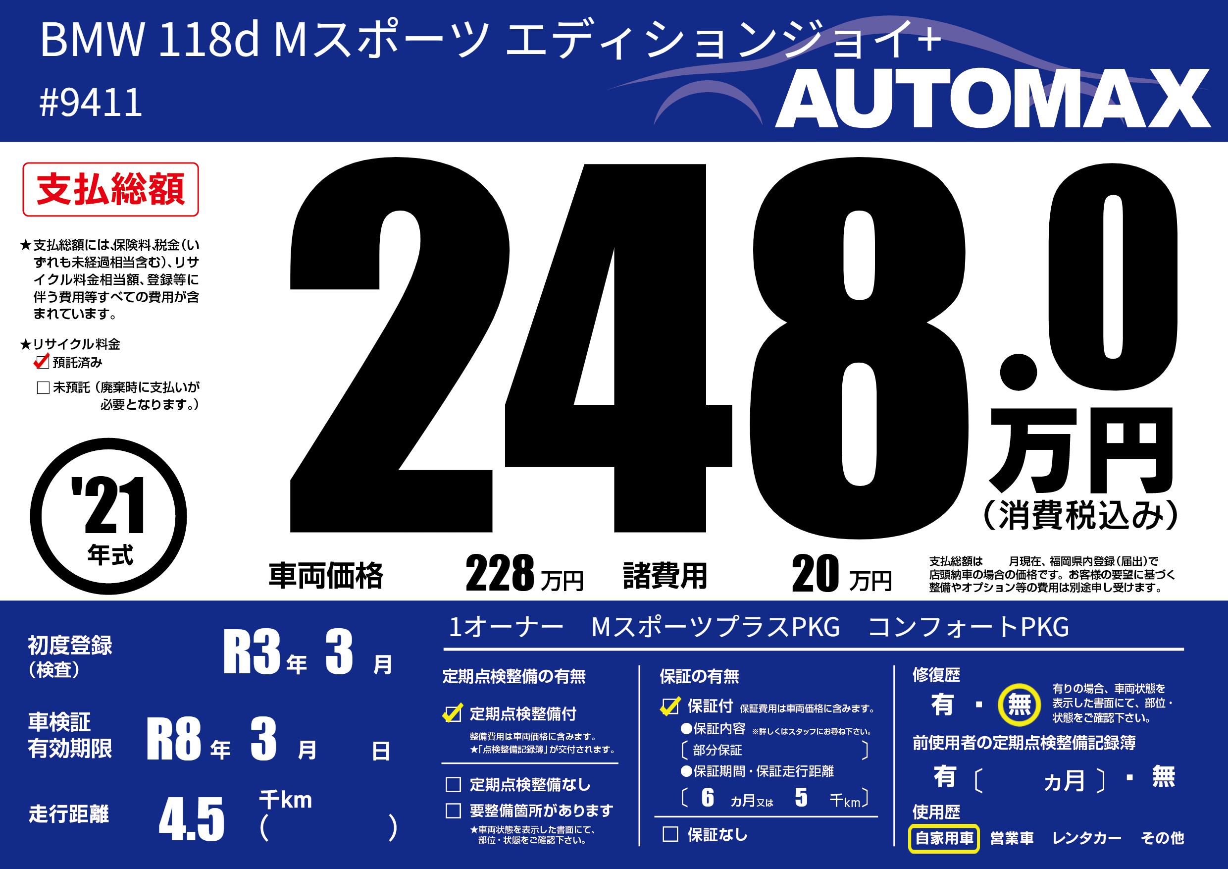 なし | 車検制限 | R8年3月---月 |