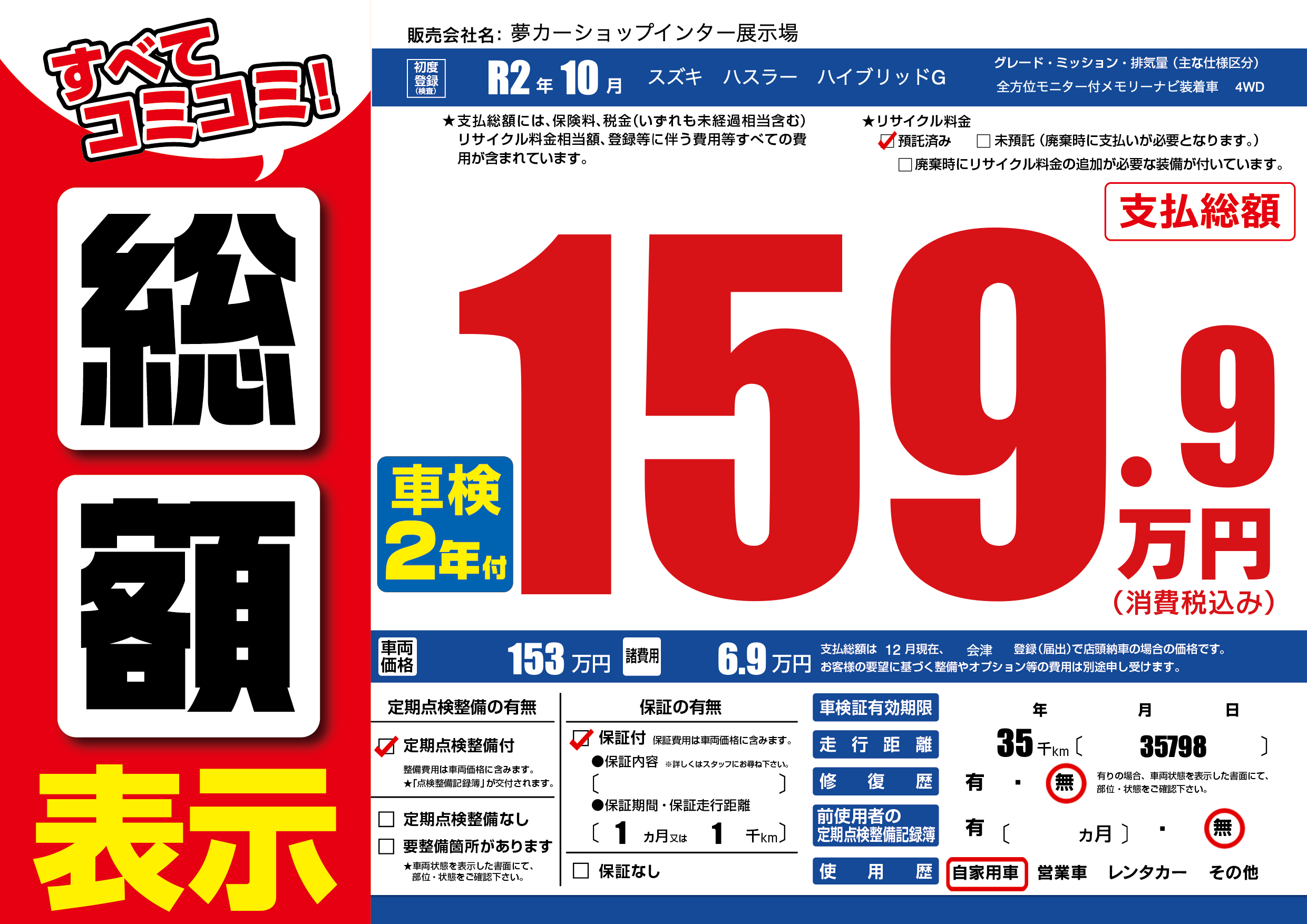 | 定期点検整備 | 定期点検整備あり | ||
