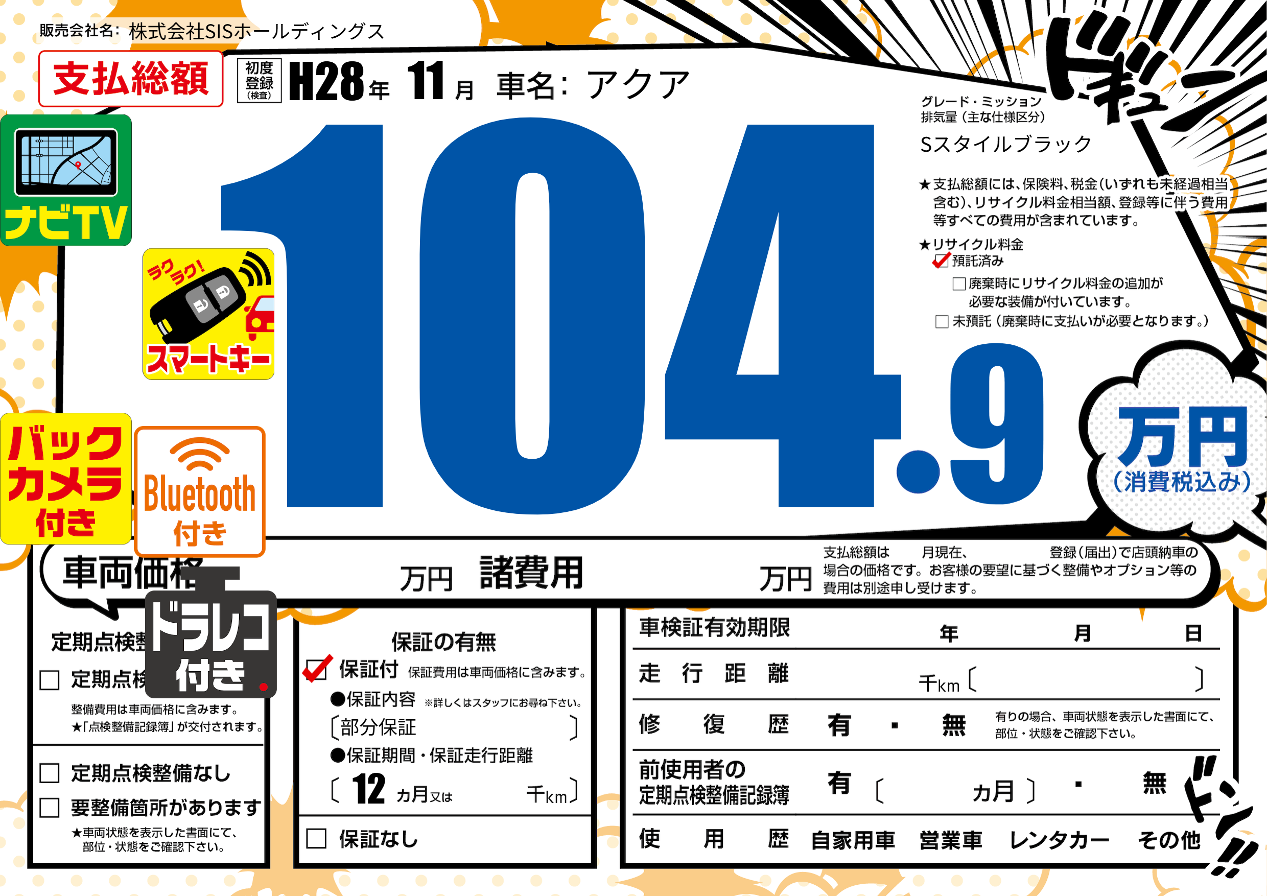 | 走行キロ | - | 初年度登録 | H28年11月 |
