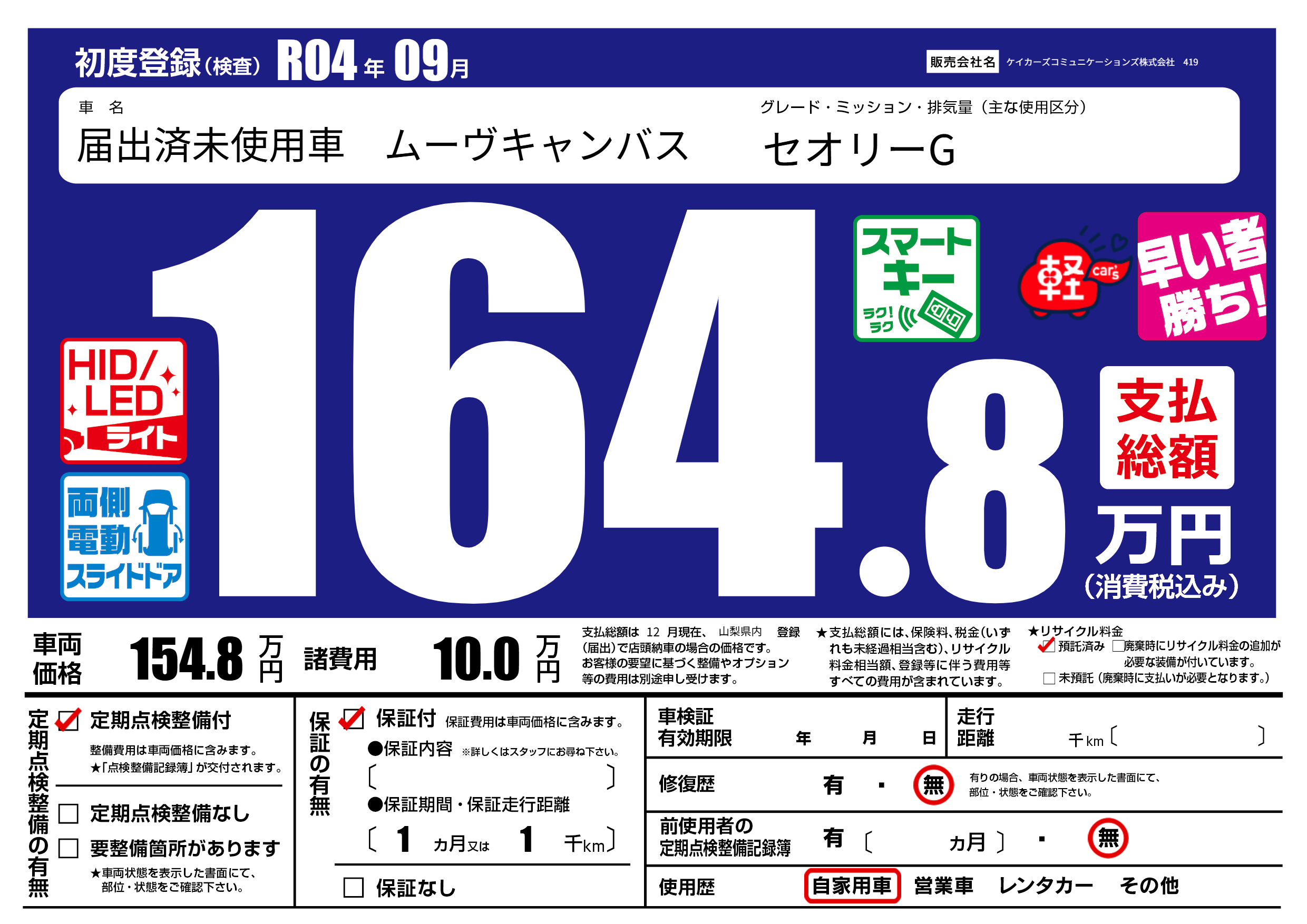 | 初年度登録 | R04年09月 | ||