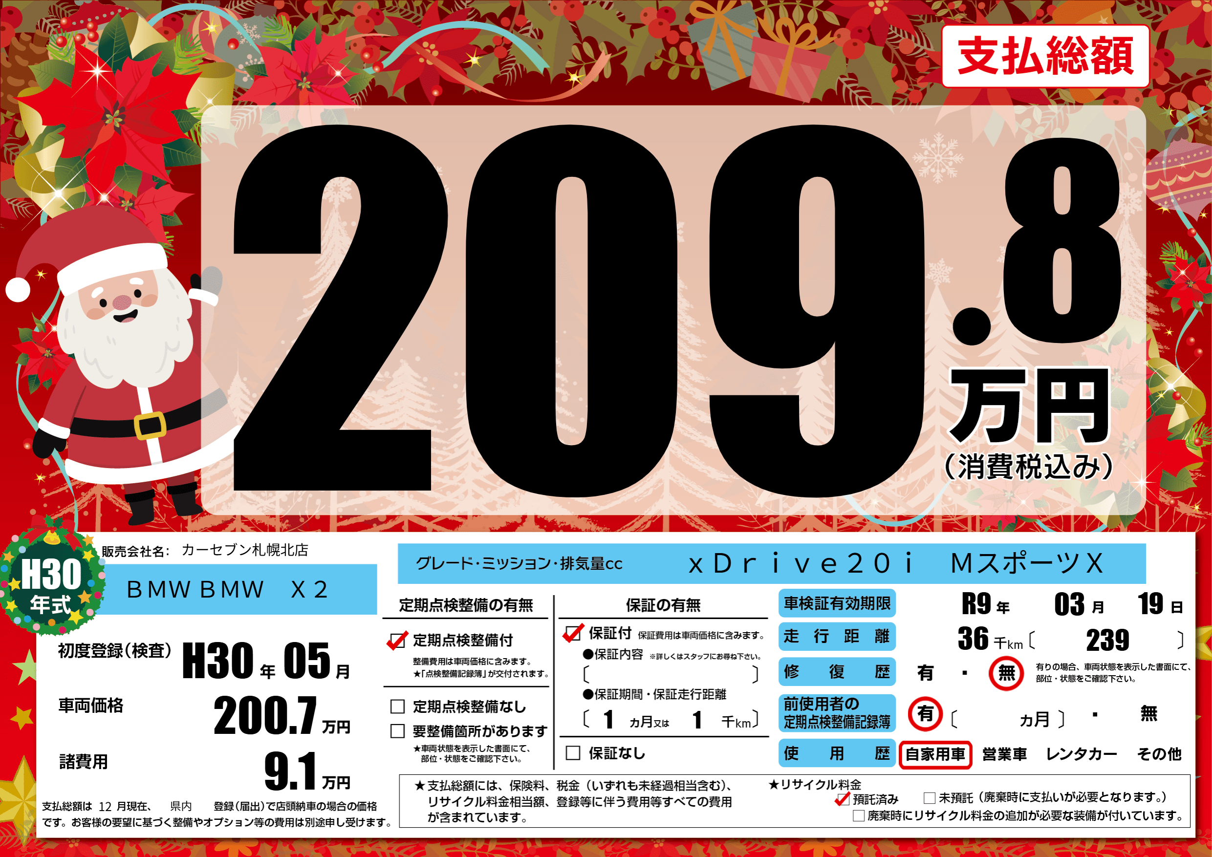 | 車名 | BMW BMW X2 | グレード ミッション 排気量 |