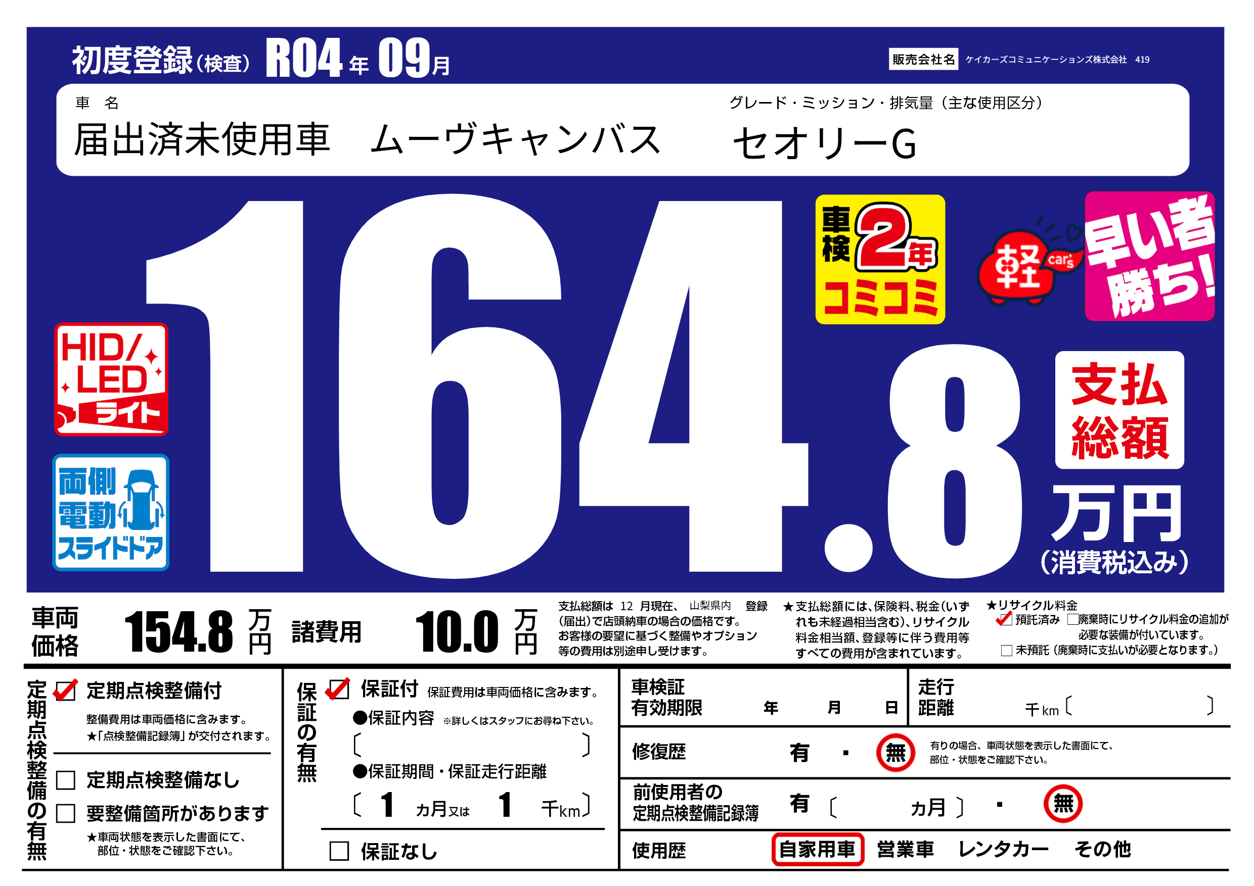 | 走行キロ | - | 初年度登録 | R04年09月 |
