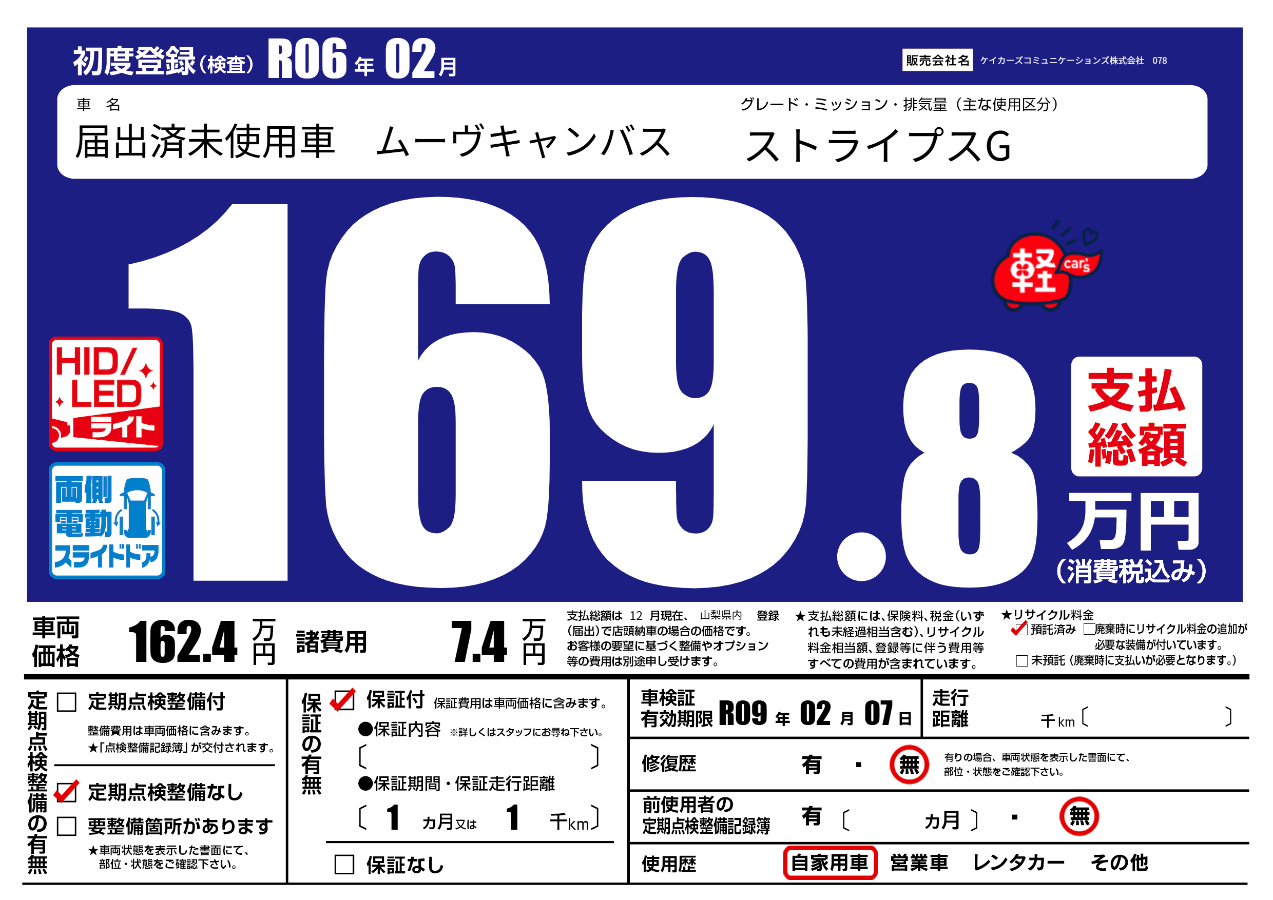 | 走行キロ | - | 初年度登録 | R06年02月 |