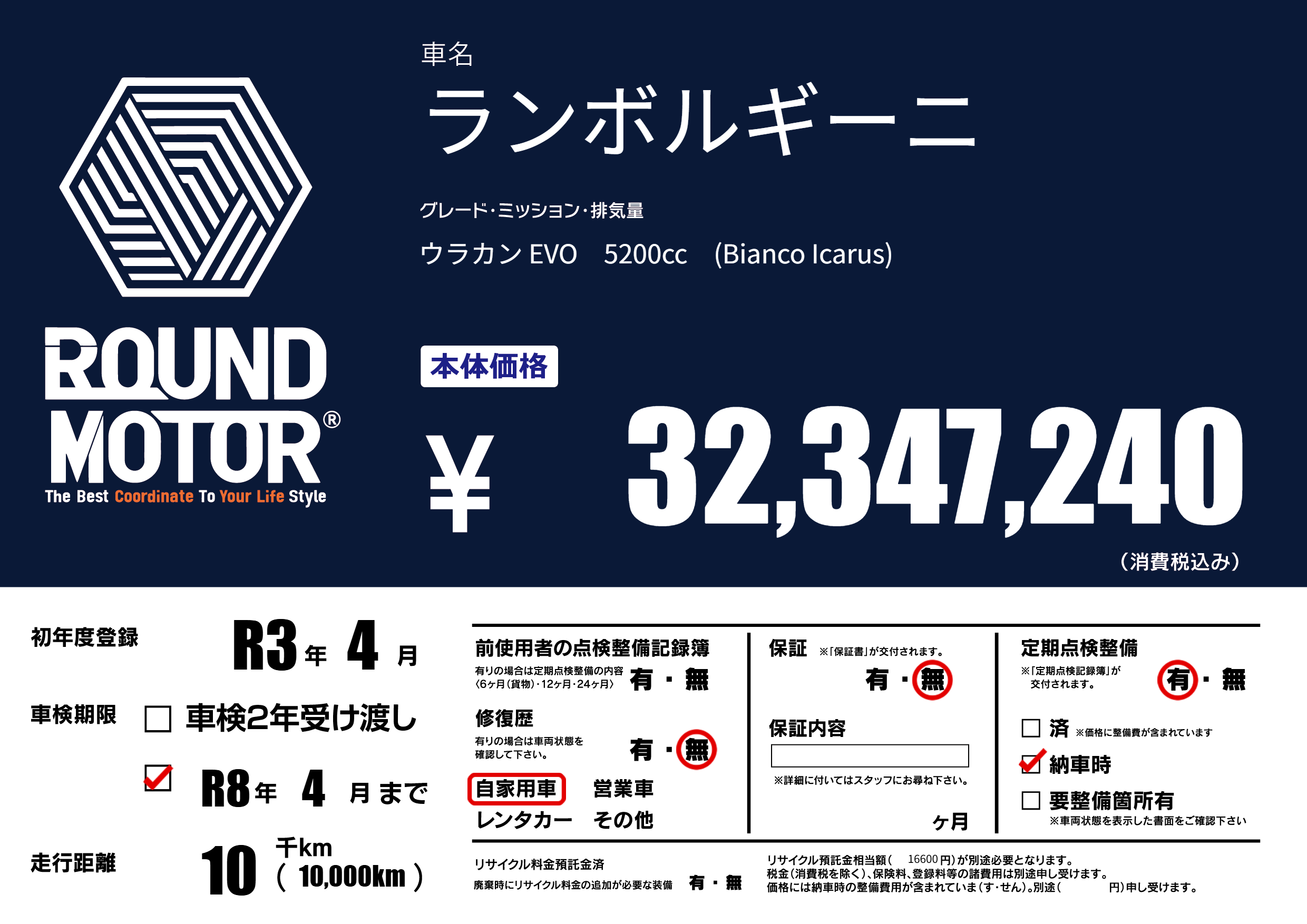 なし | 車検制限 | R8年4月---月 |