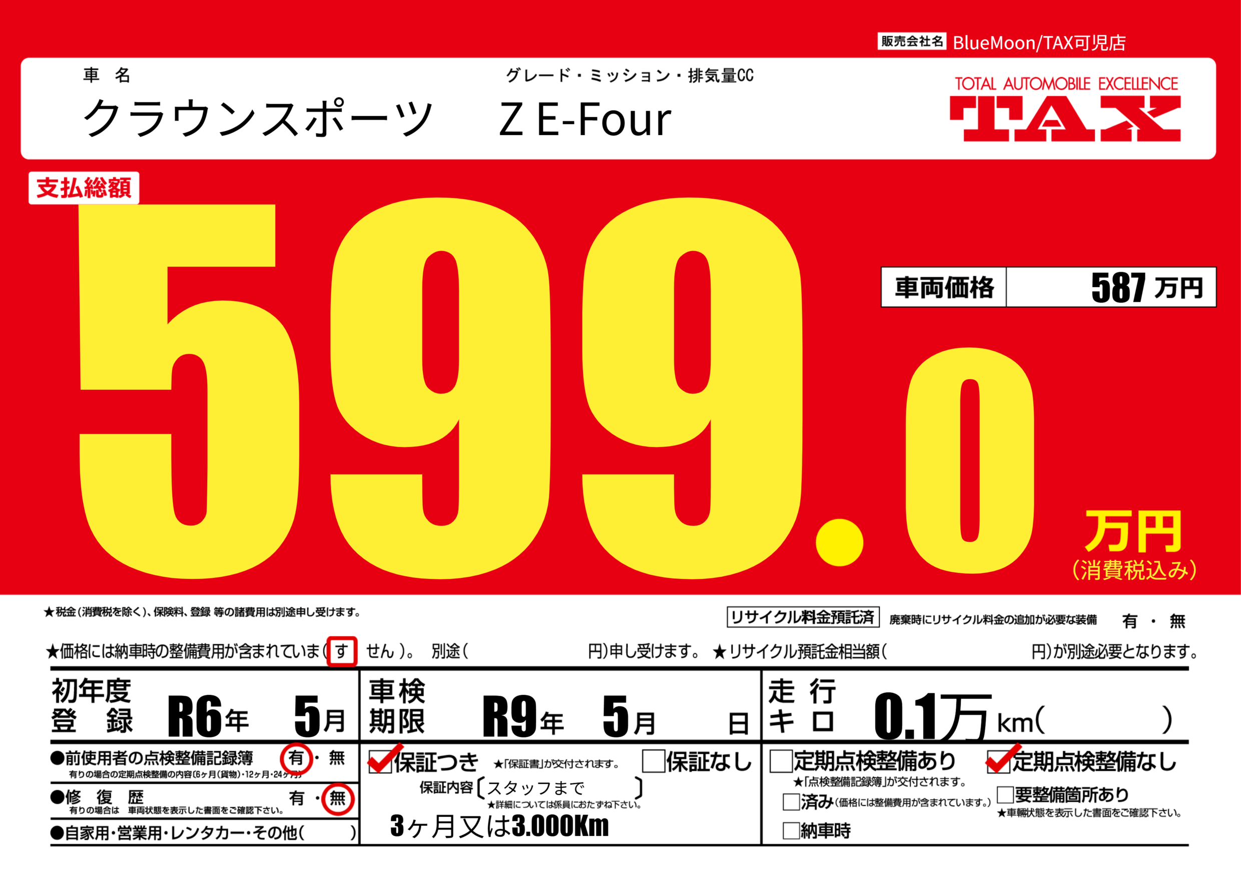 | 車名 | クラウンスポーツ | グレード ミッション 排気量 |