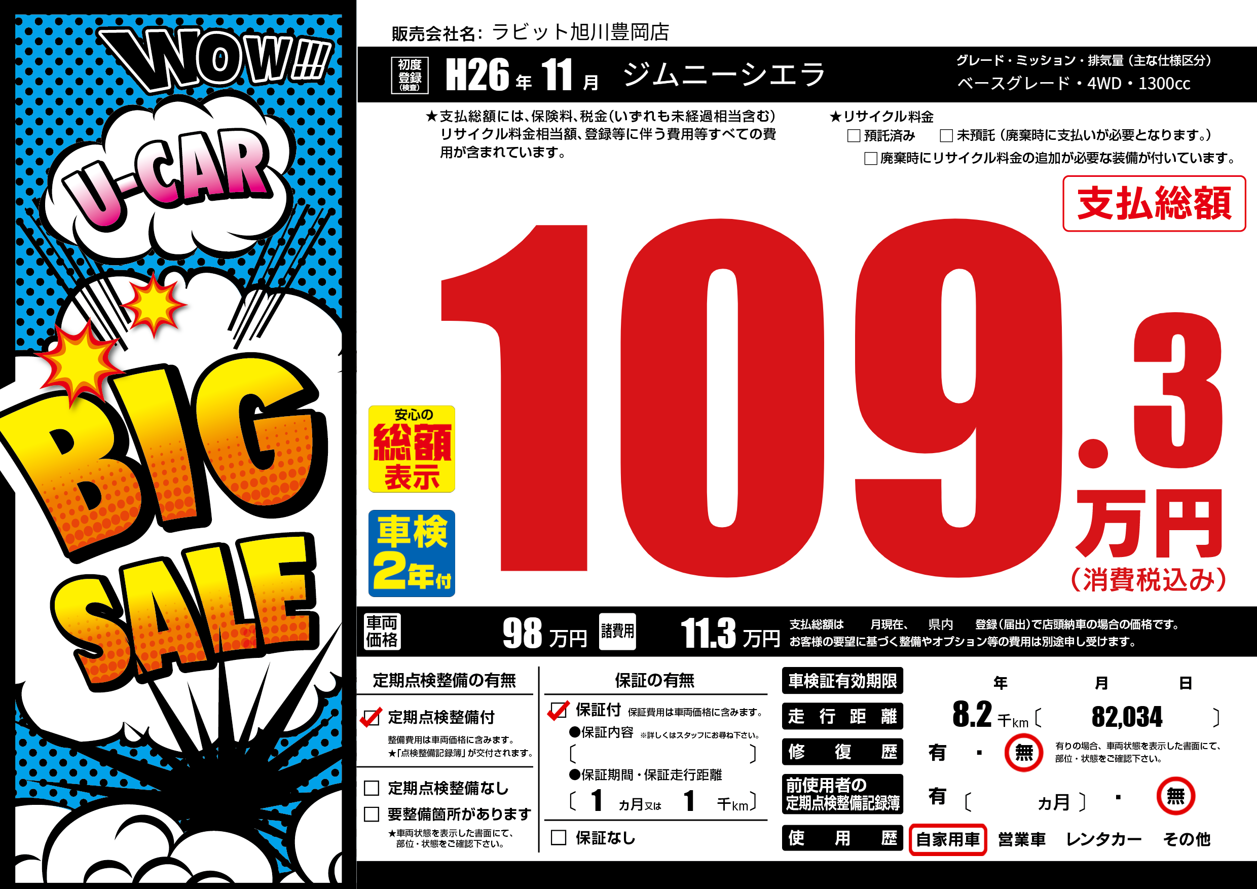 | 車名 | ジムニーシエラ | グレード ミッション 排気量 |