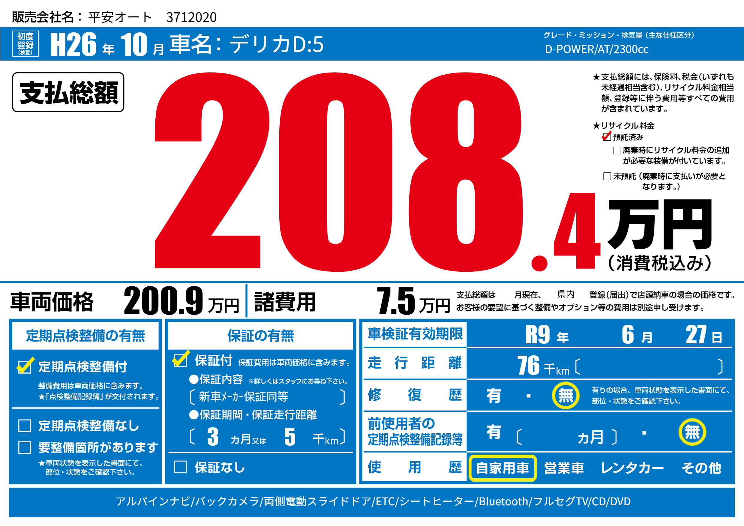 なし | 車検制限 | R9年6月27月 |