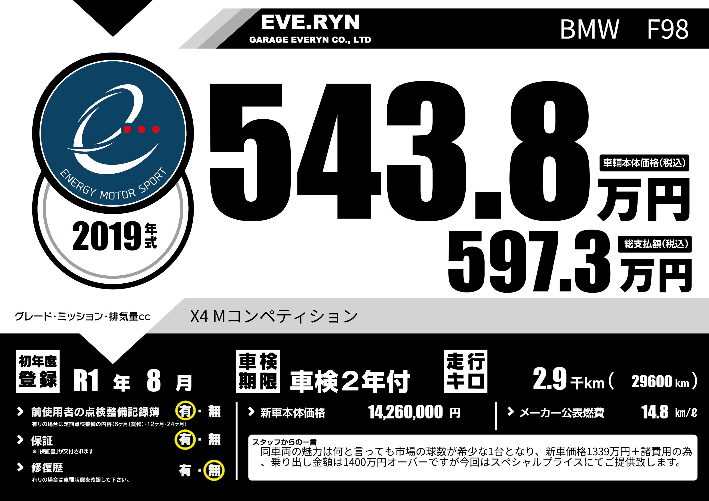 | 車名 | BMW F98 | グレード ミッション 排気量 |