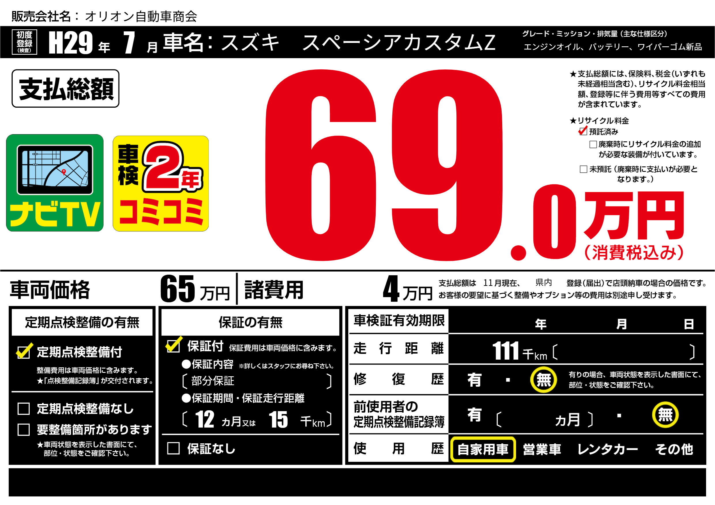 | 定期点検整備 | 定期点検整備あり | ||