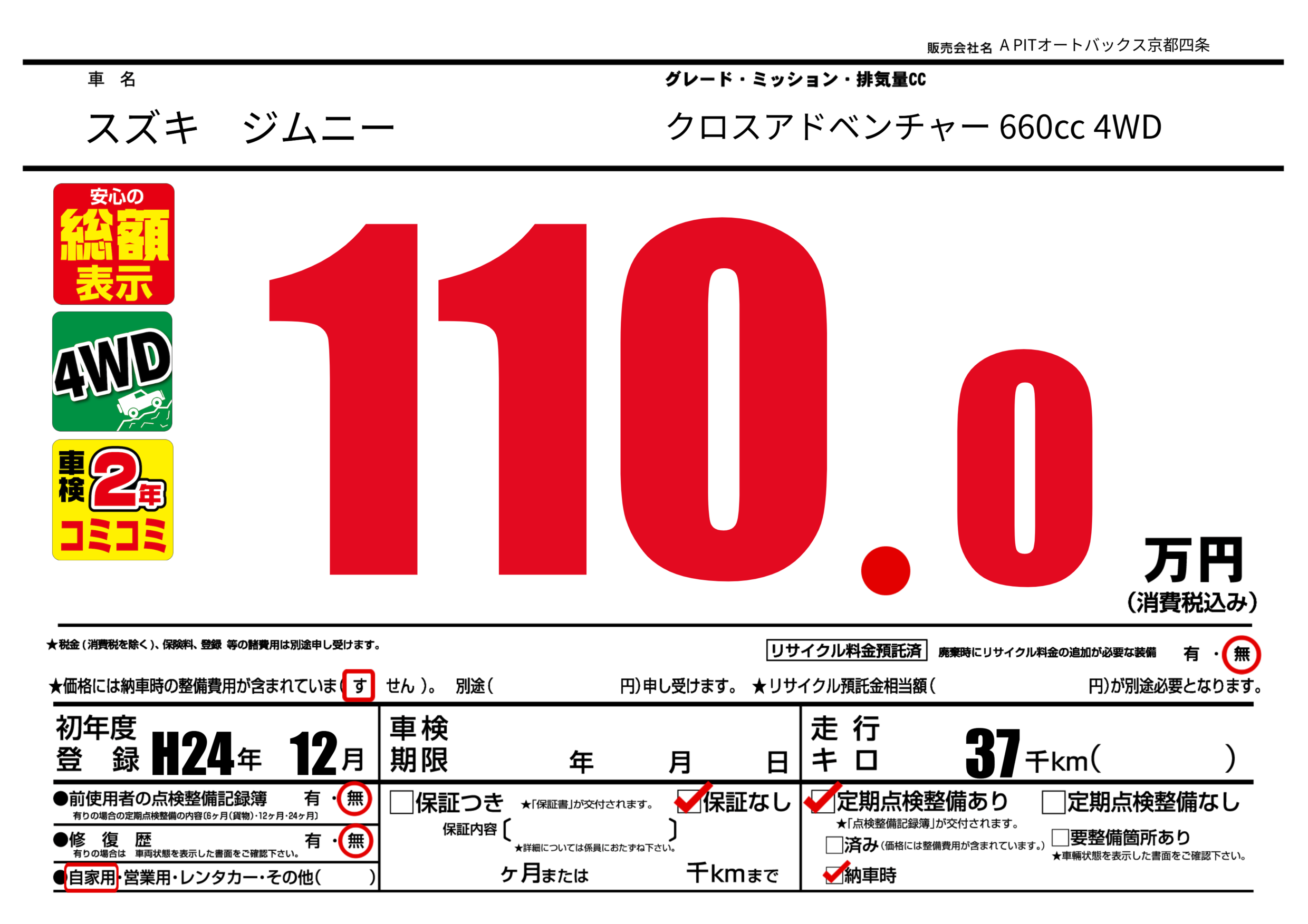 初年度登録 H24年12月