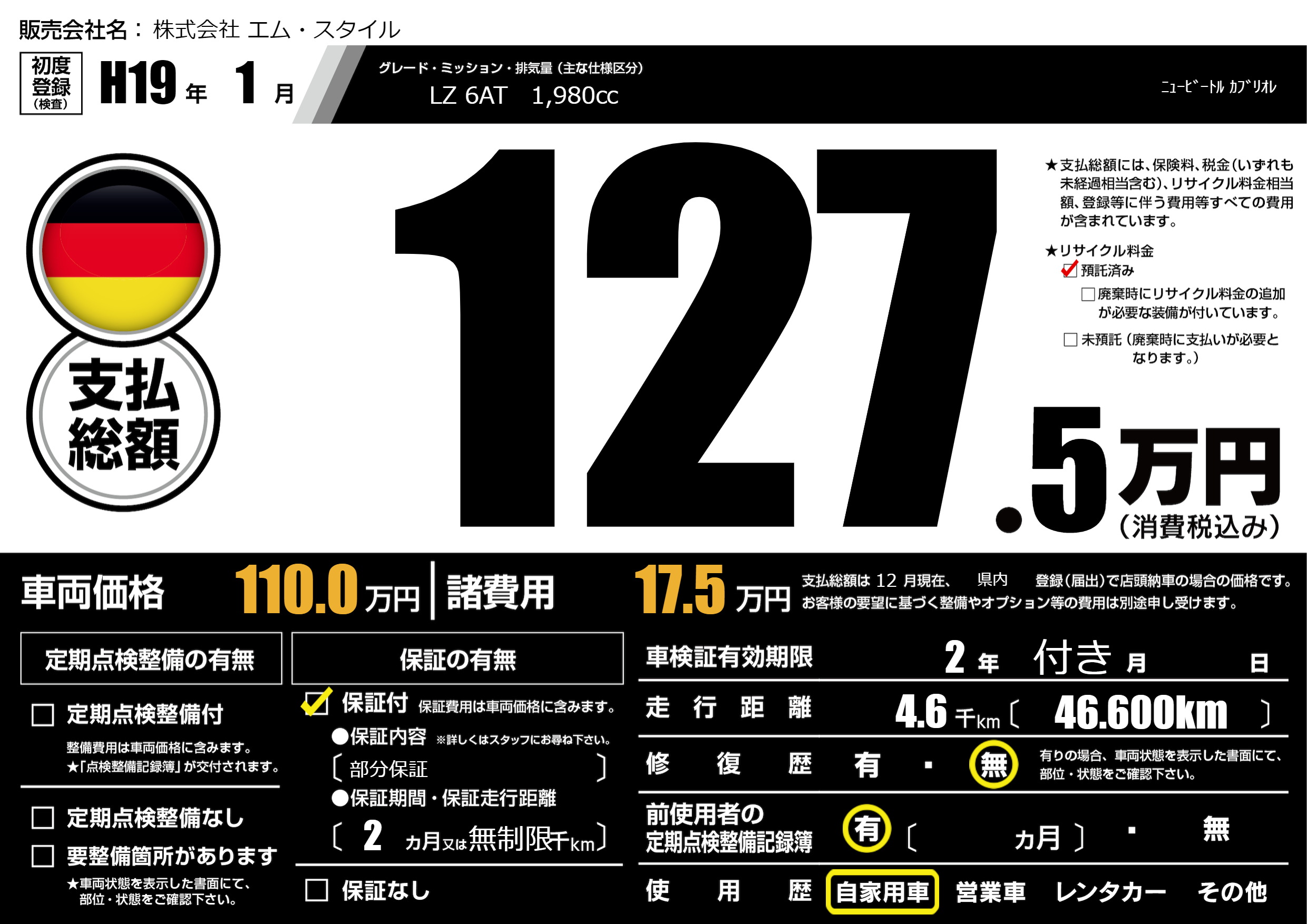 なし | 車検制限 | 2年付き月---月 |