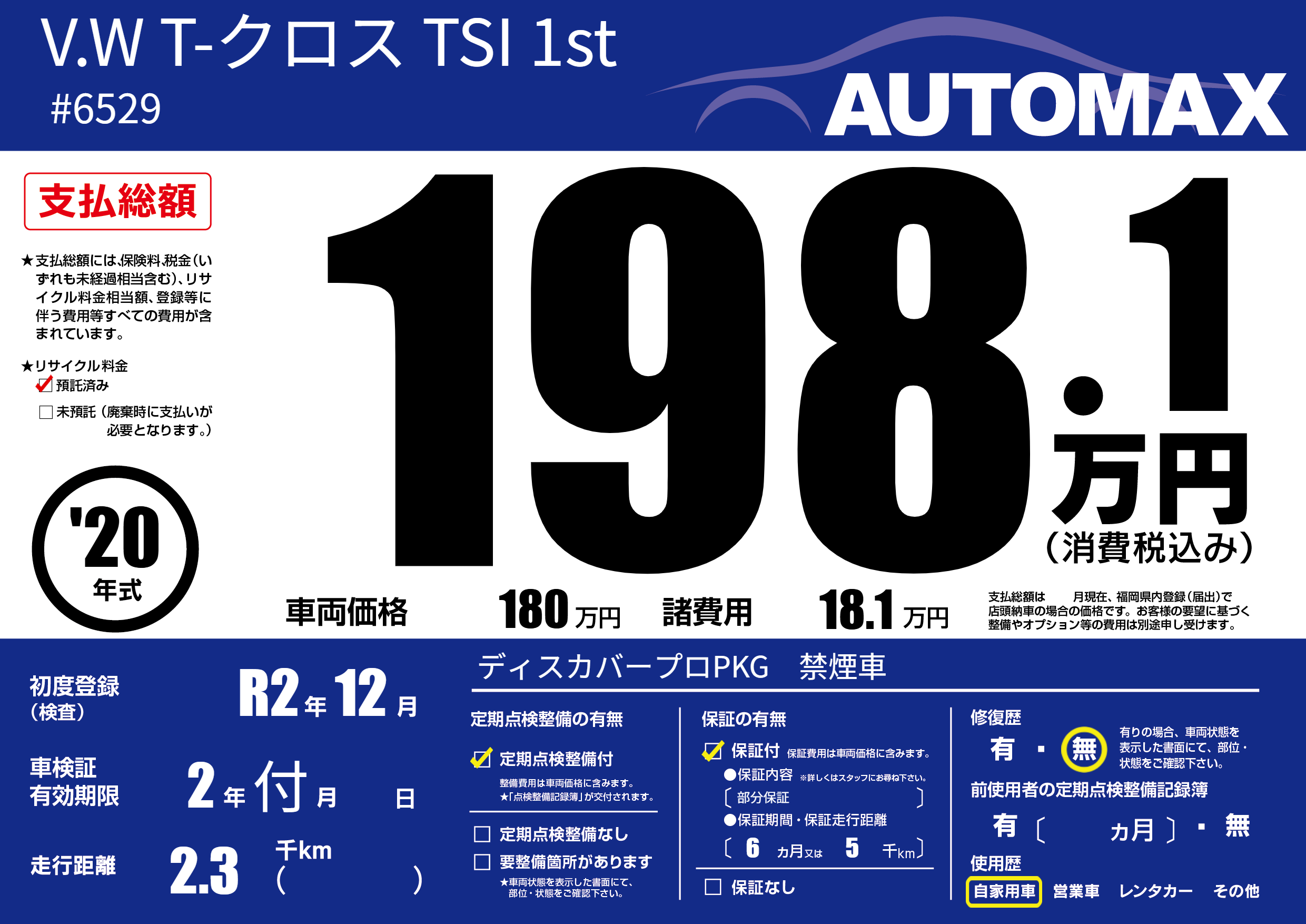 なし | 車検制限 | 2年付月---月 |