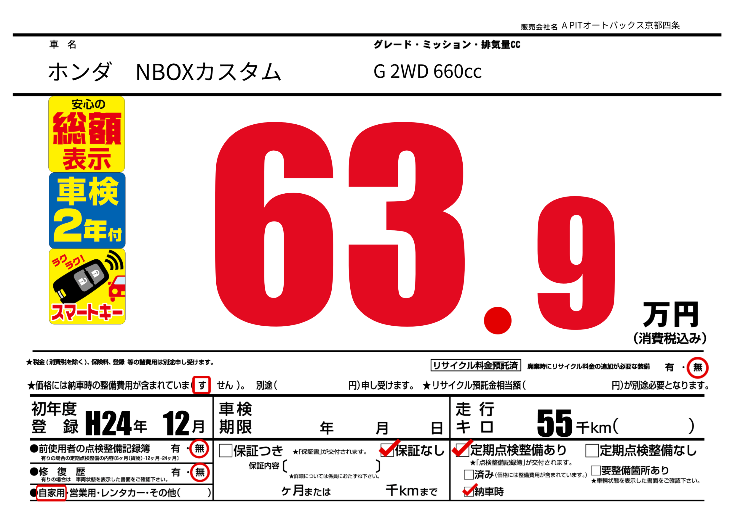 | 車名 | ホンダ NBOXカスタム | グレード ミッション 排気量 |