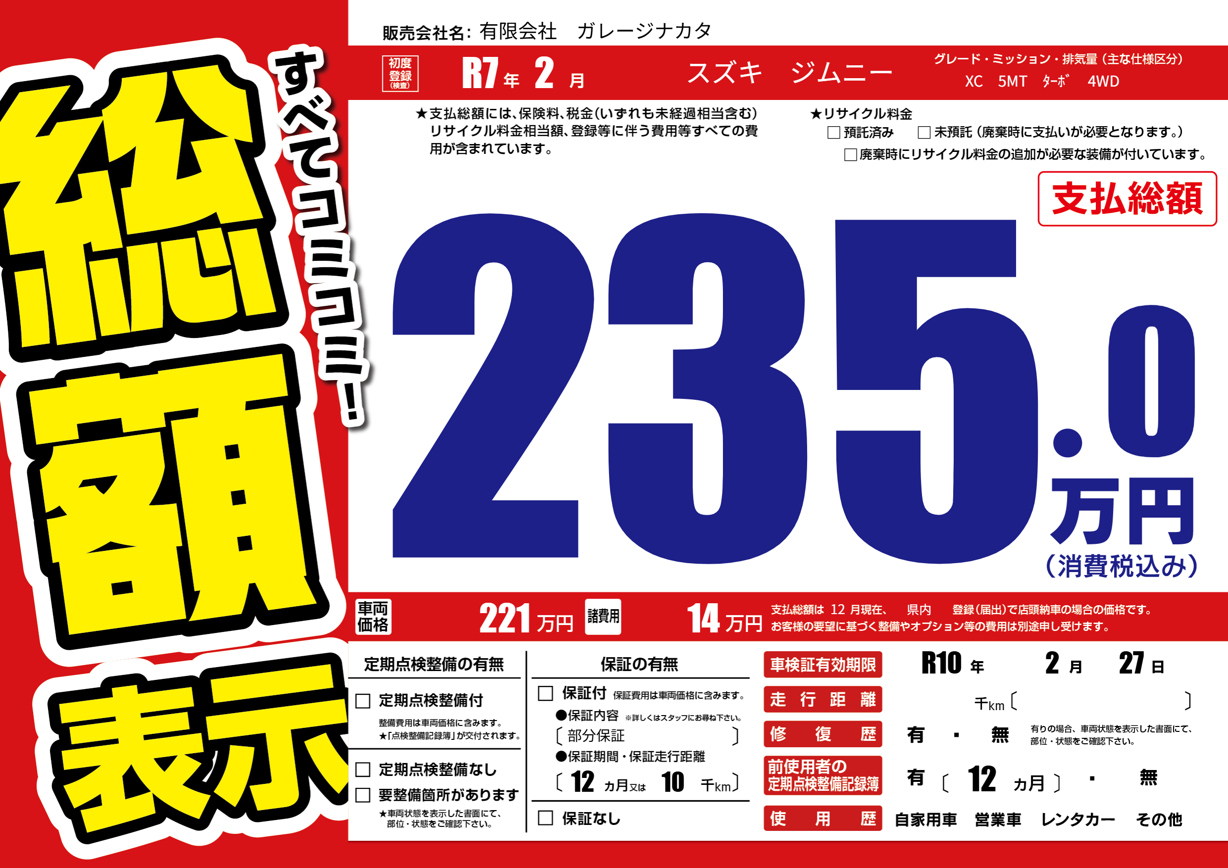 車検制限 R10年 2月 27日