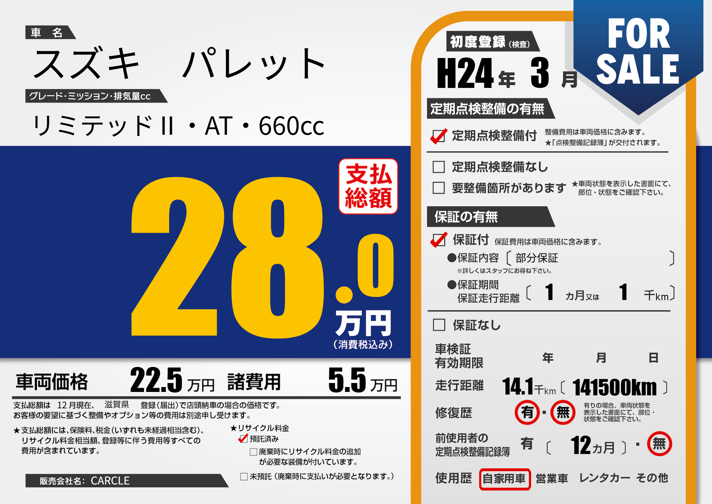 | 定期点検整備 | 定期点検整備あり | ||