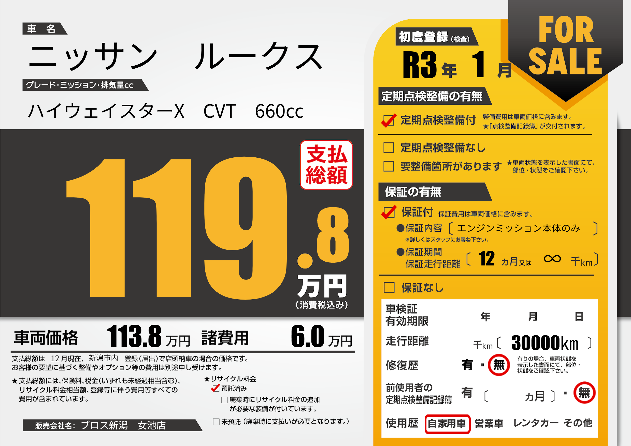 | 走行キロ | - | 初年度登録 | R3年1月 |