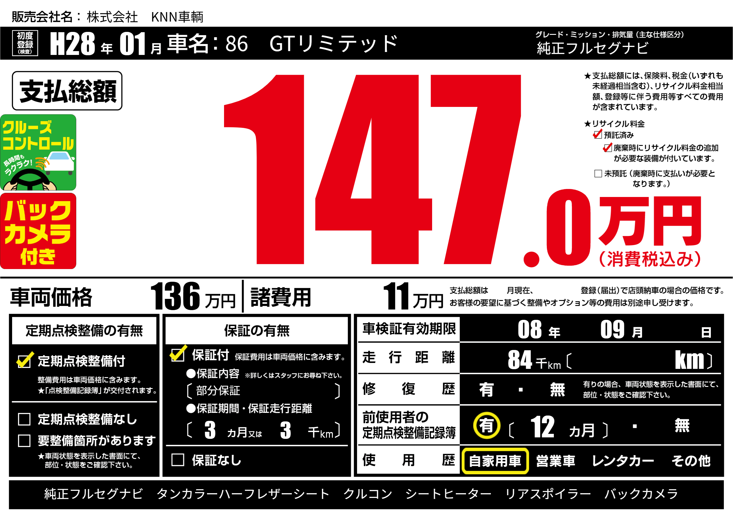 なし | 車検制限 | 08年09月---月 |