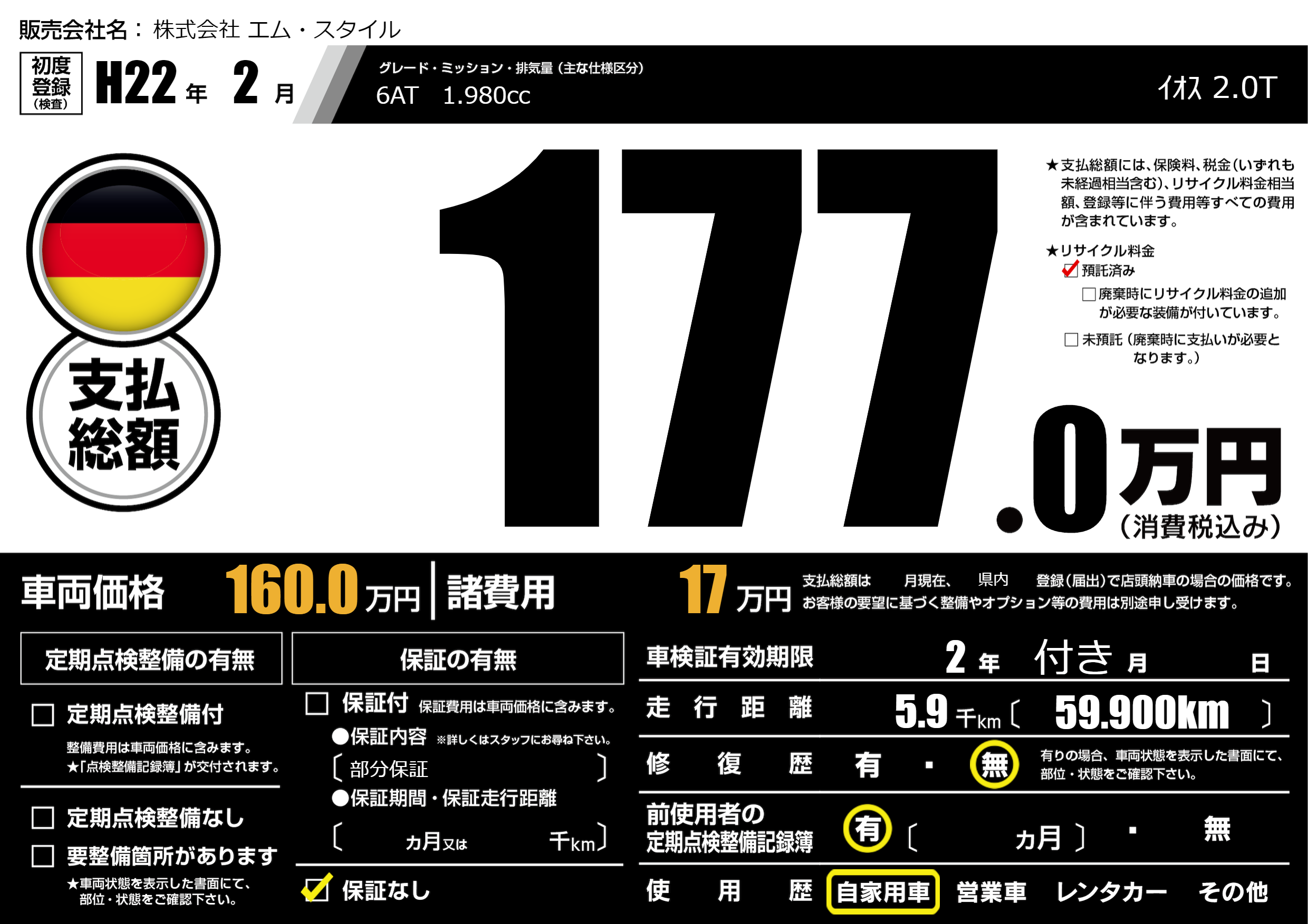 なし | 車検制限 | 2年付き月---月 |