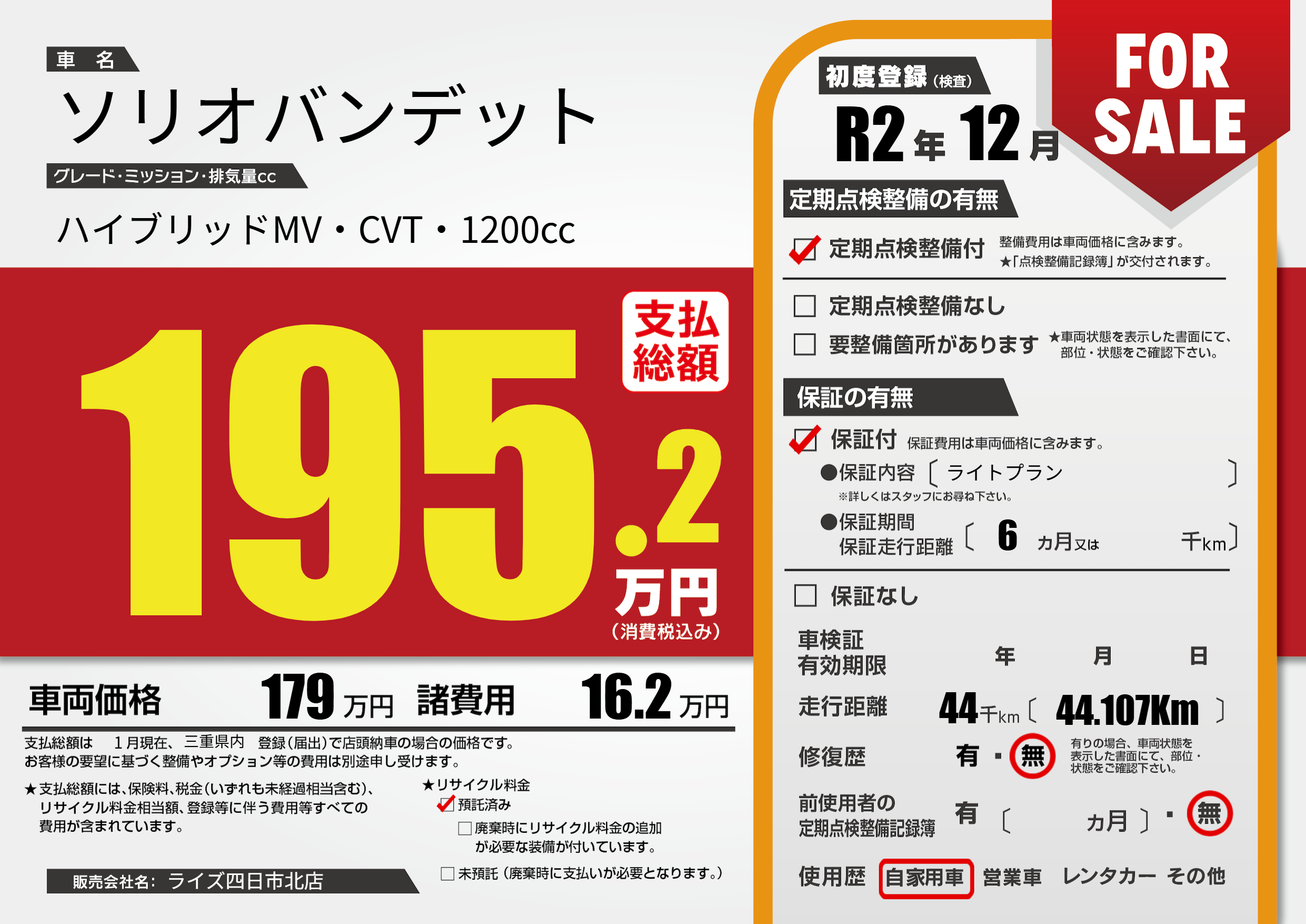 | 初年度登録 | R2年12月 | ||