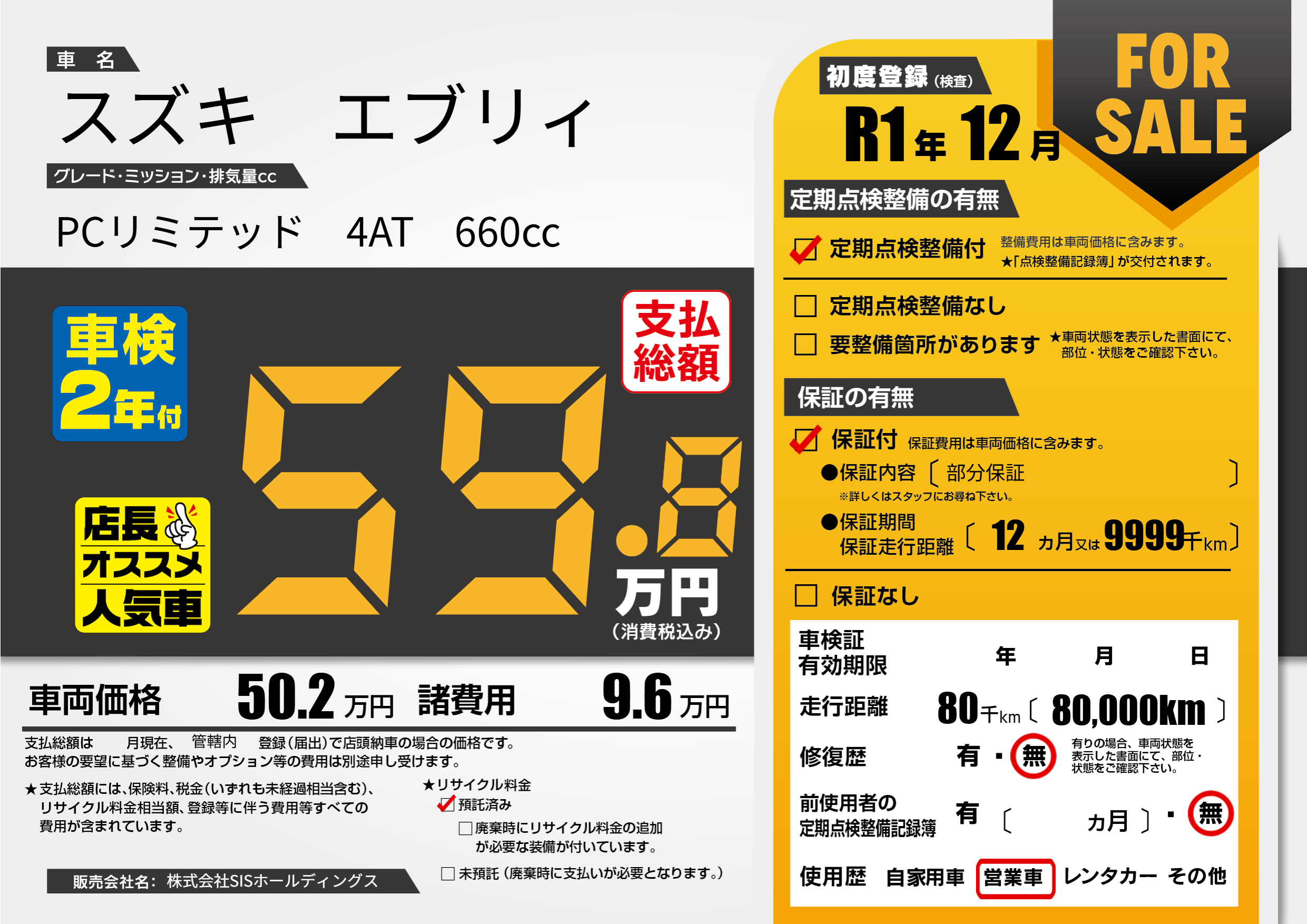 | メーカー | - | 種別 | 営業用 |