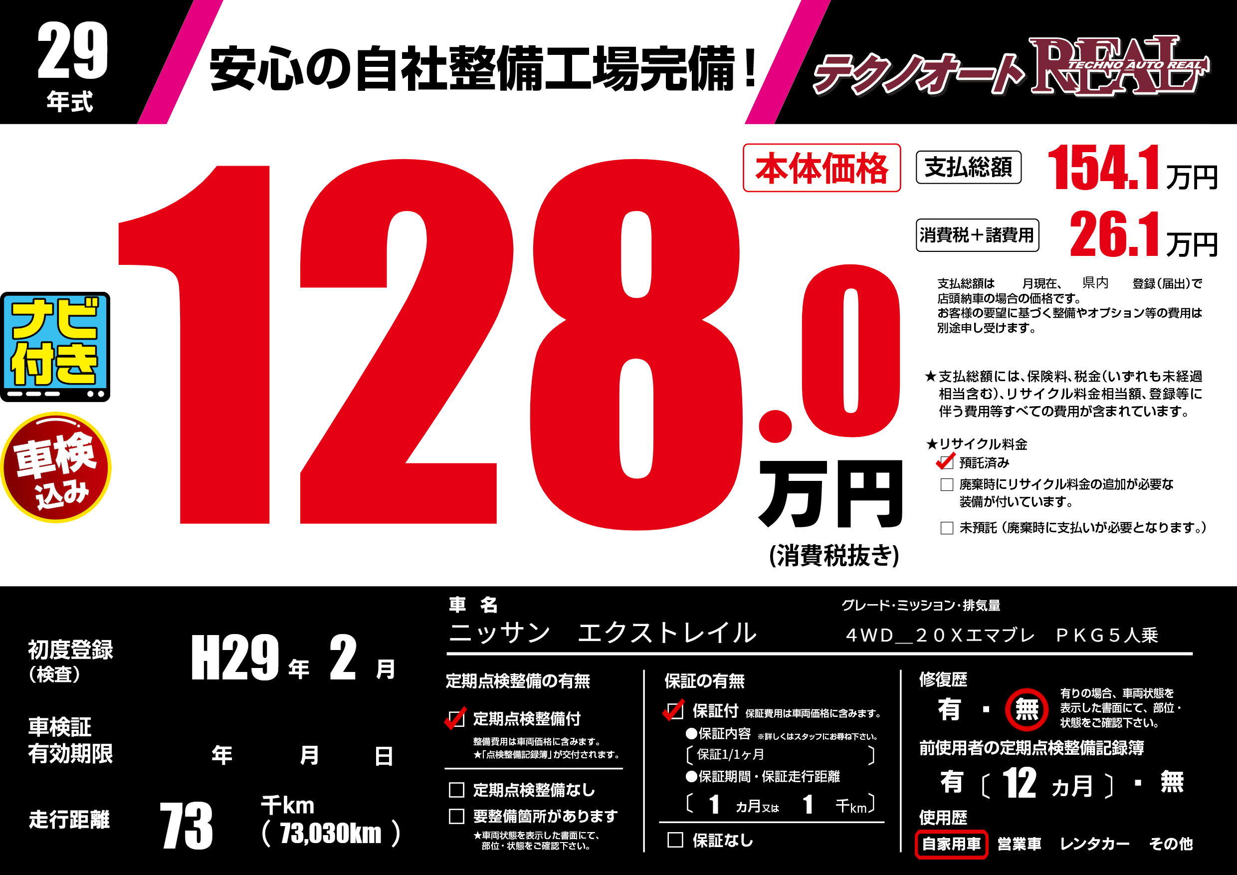 | 走行キロ | 7.3万km | 初年度登録 | H29年2月 |
