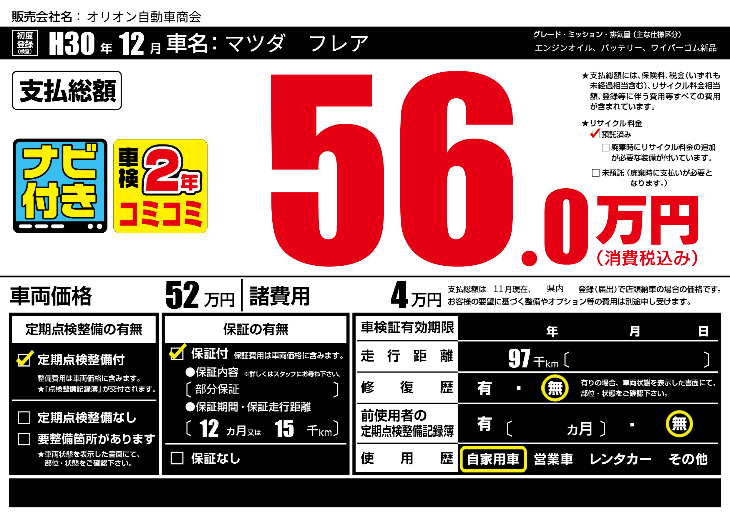 | 定期点検整備 | 定期点検整備あり | ||