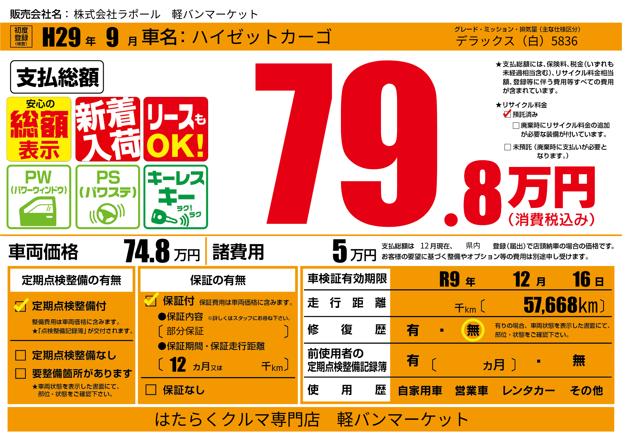なし | 車検制限 | R9年12月16月 |