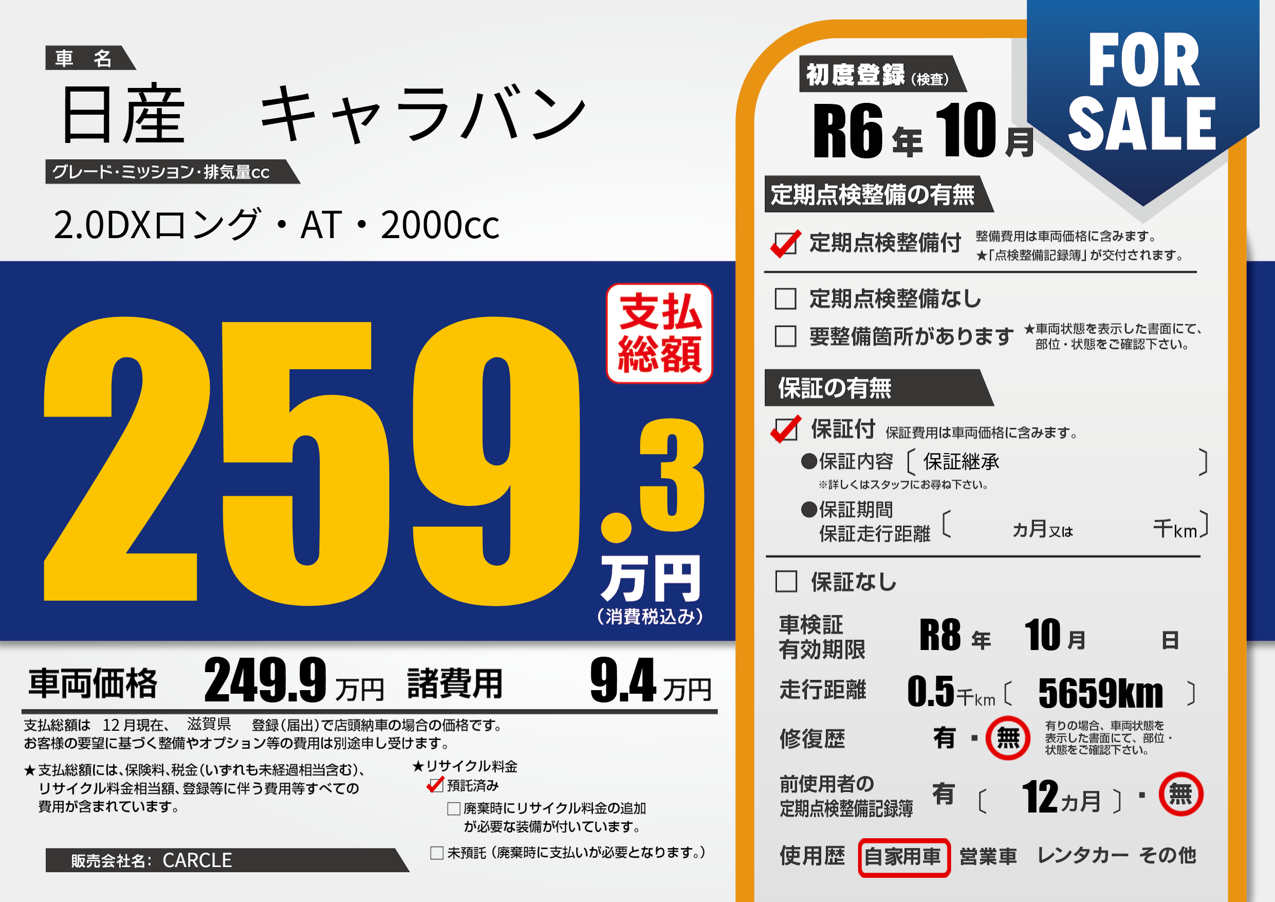 | 走行キロ | - | 初年度登録 | R6年10月 |