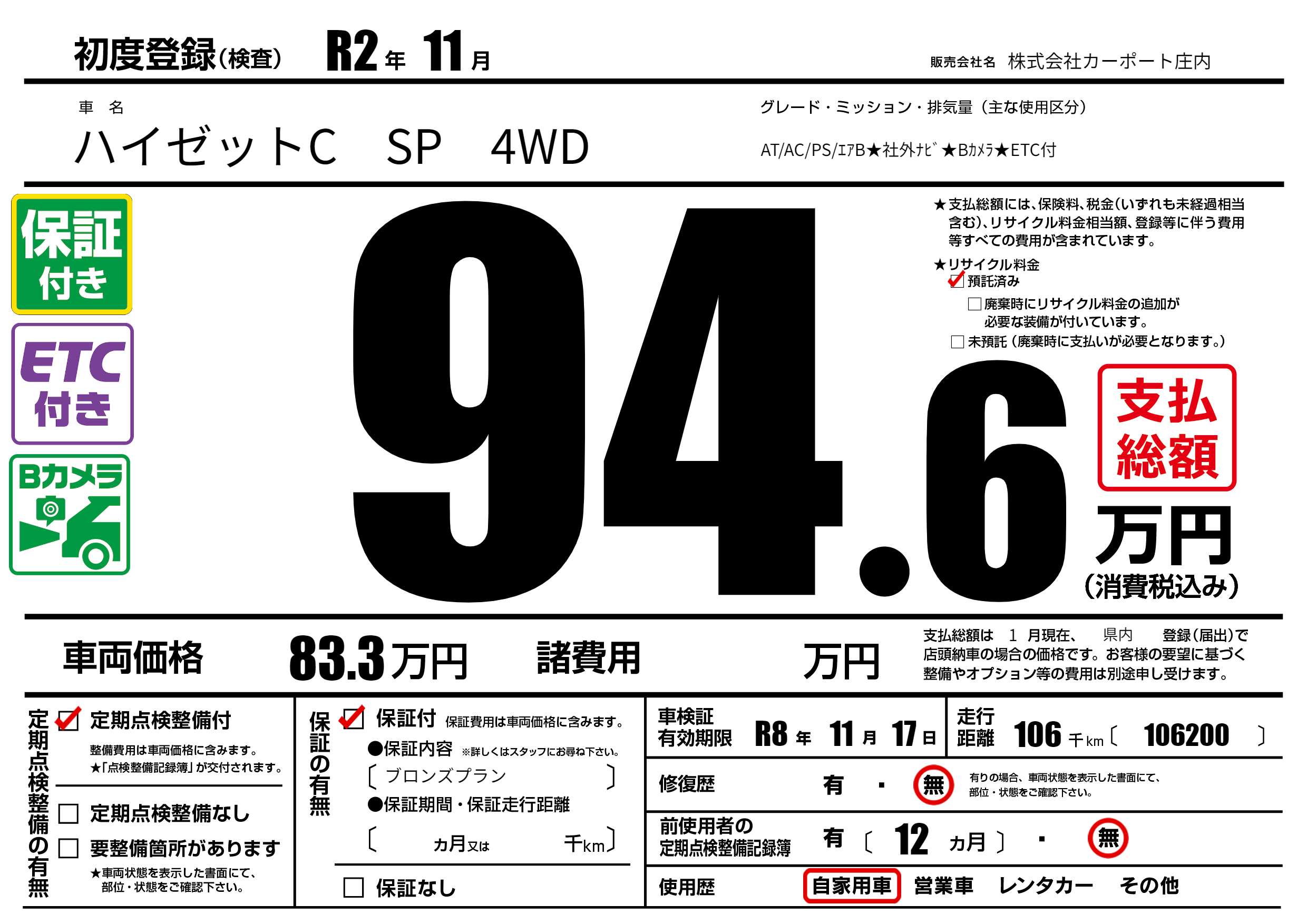 | 車検制限 | R8年 11月 17日 | ||