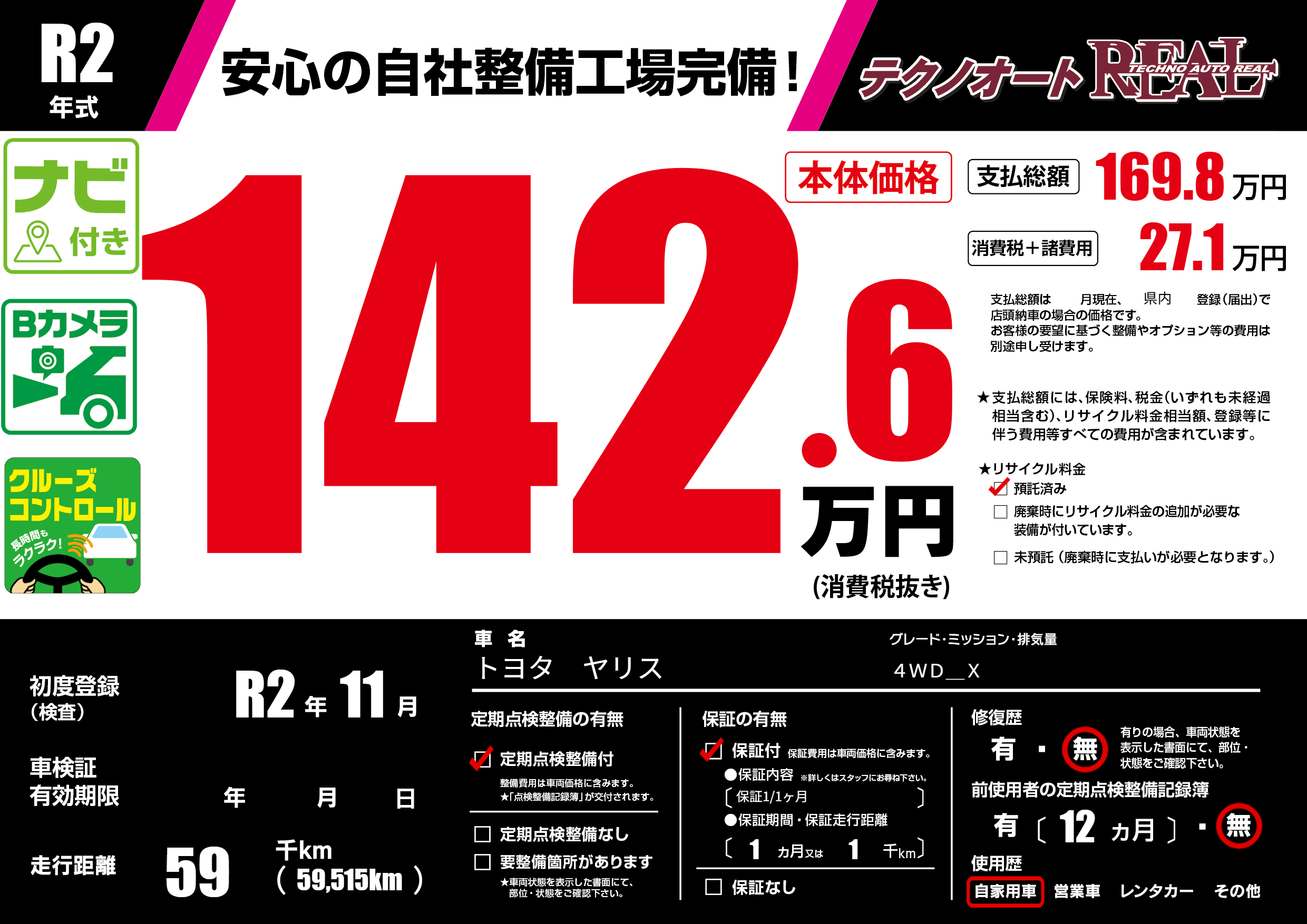 | 走行キロ | 5.9万km | 初年度登録 | R2年11月 |