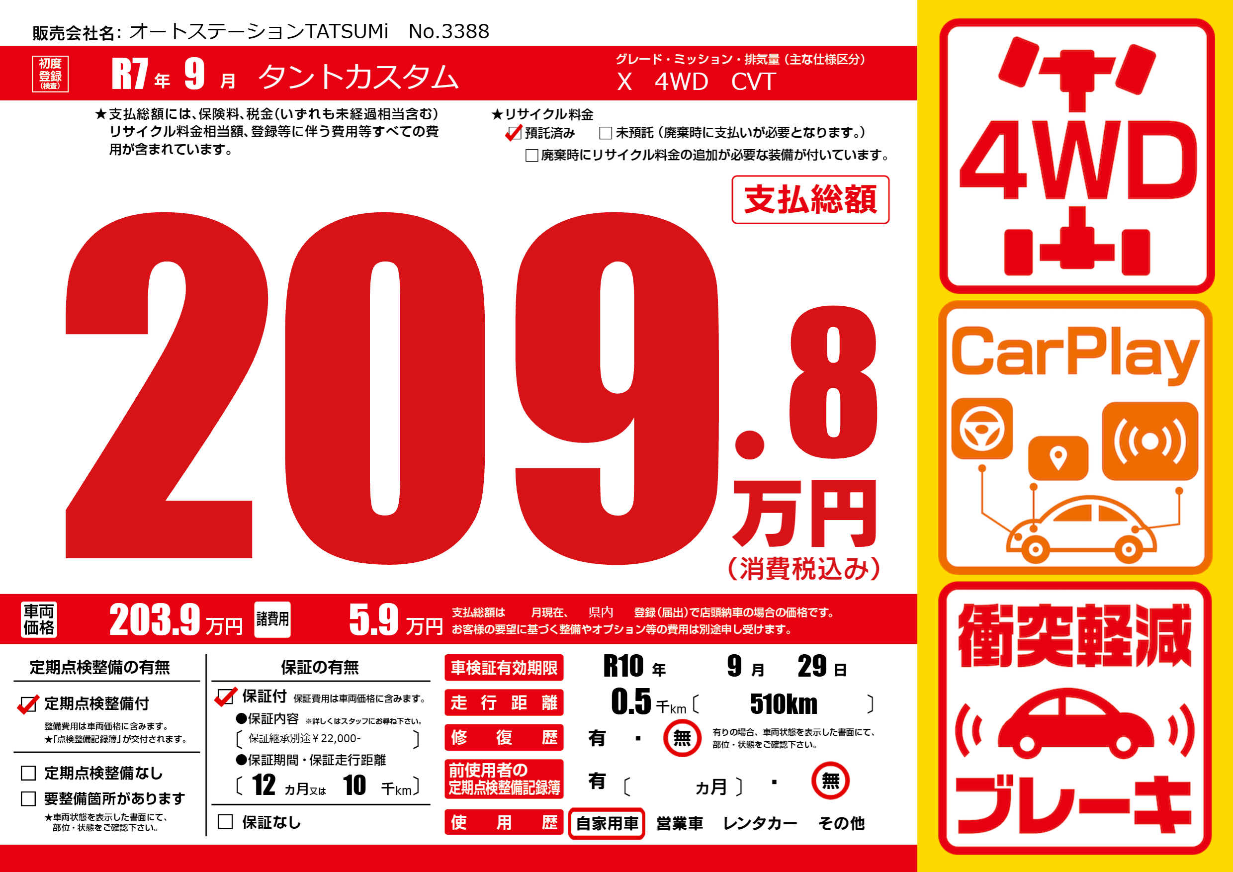 | 走行キロ | - | 初年度登録 | R7年9月 |