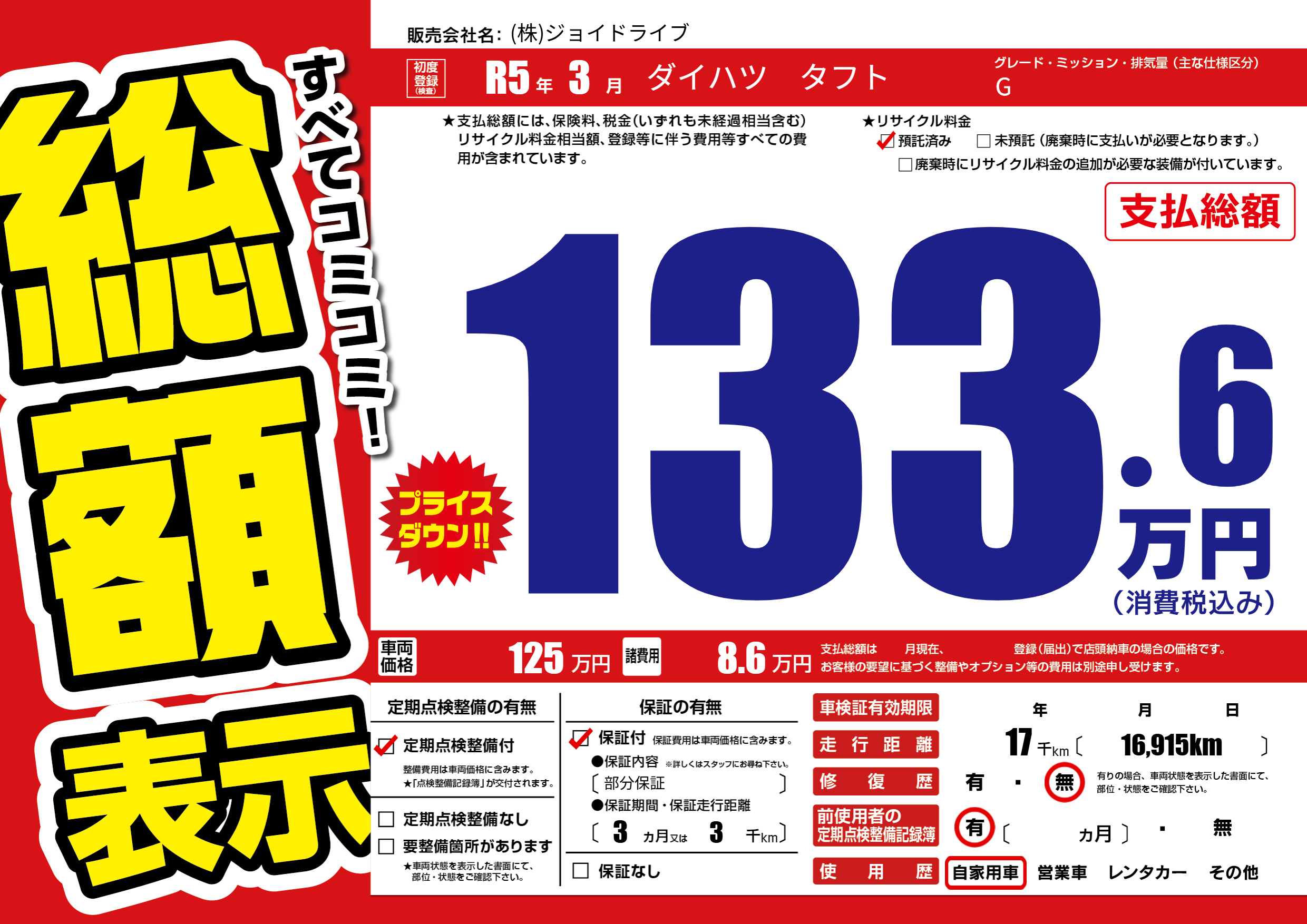 | 走行キロ | 1.7万km | 初年度登録 | R5年3月 |