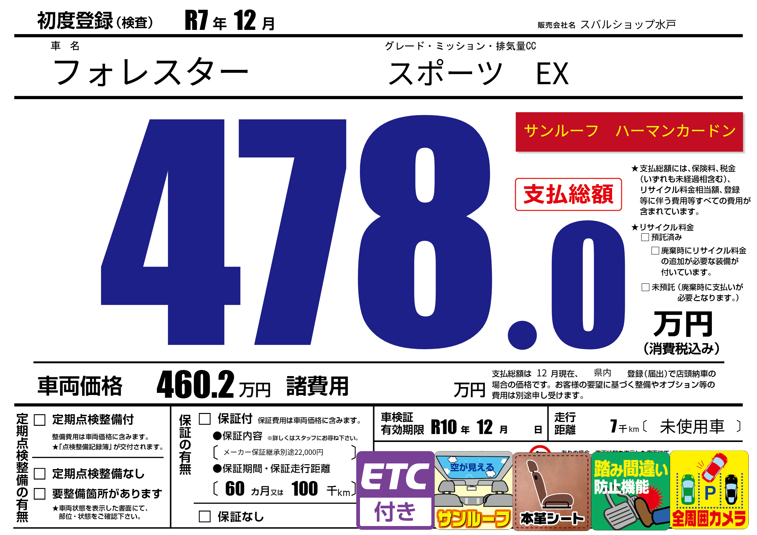| 車名 | フォレスター | グレード ミッション 排気量 |