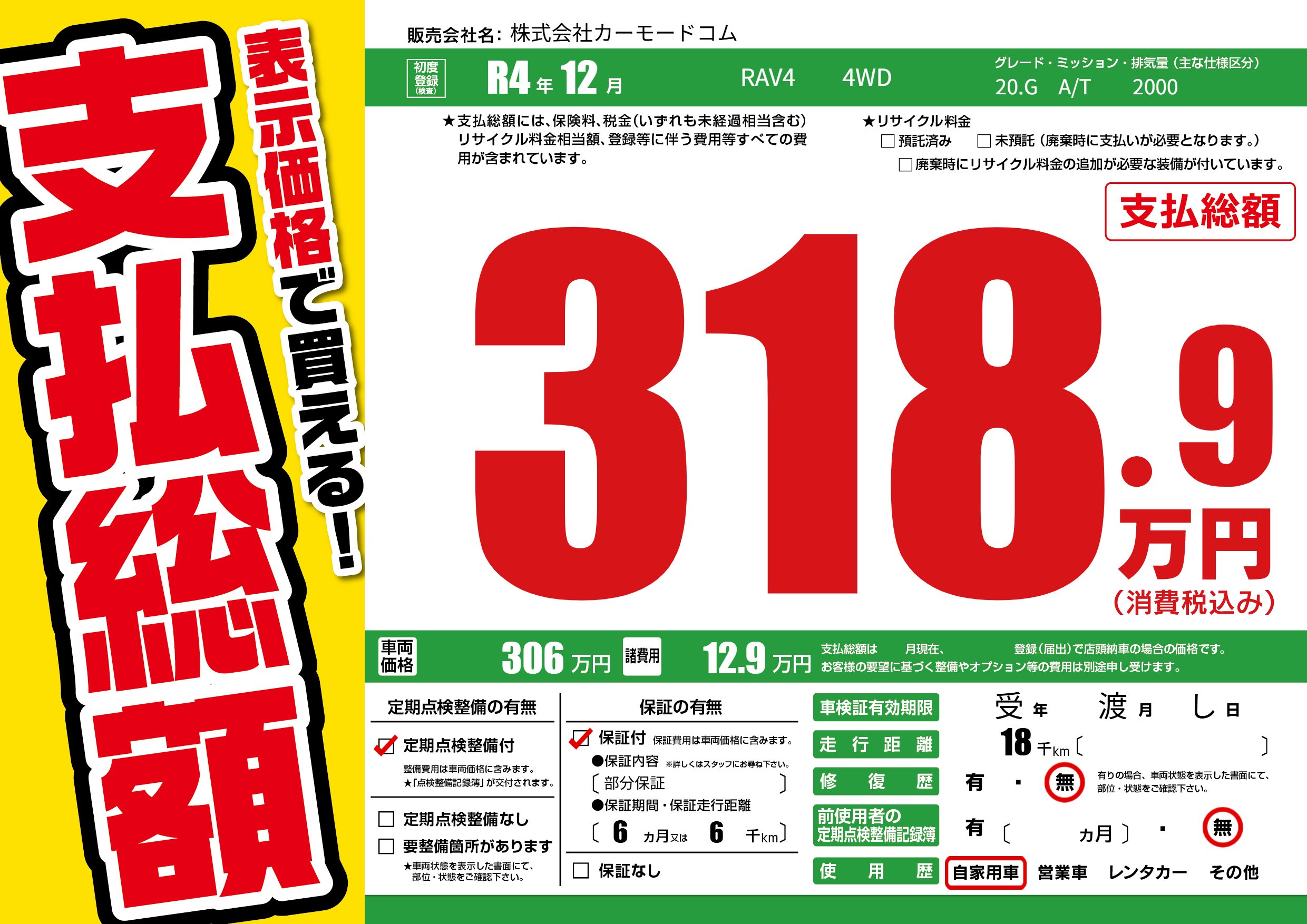 保証付き 保証内容(部分保証) 6ヶ月または(6)千kmまで |