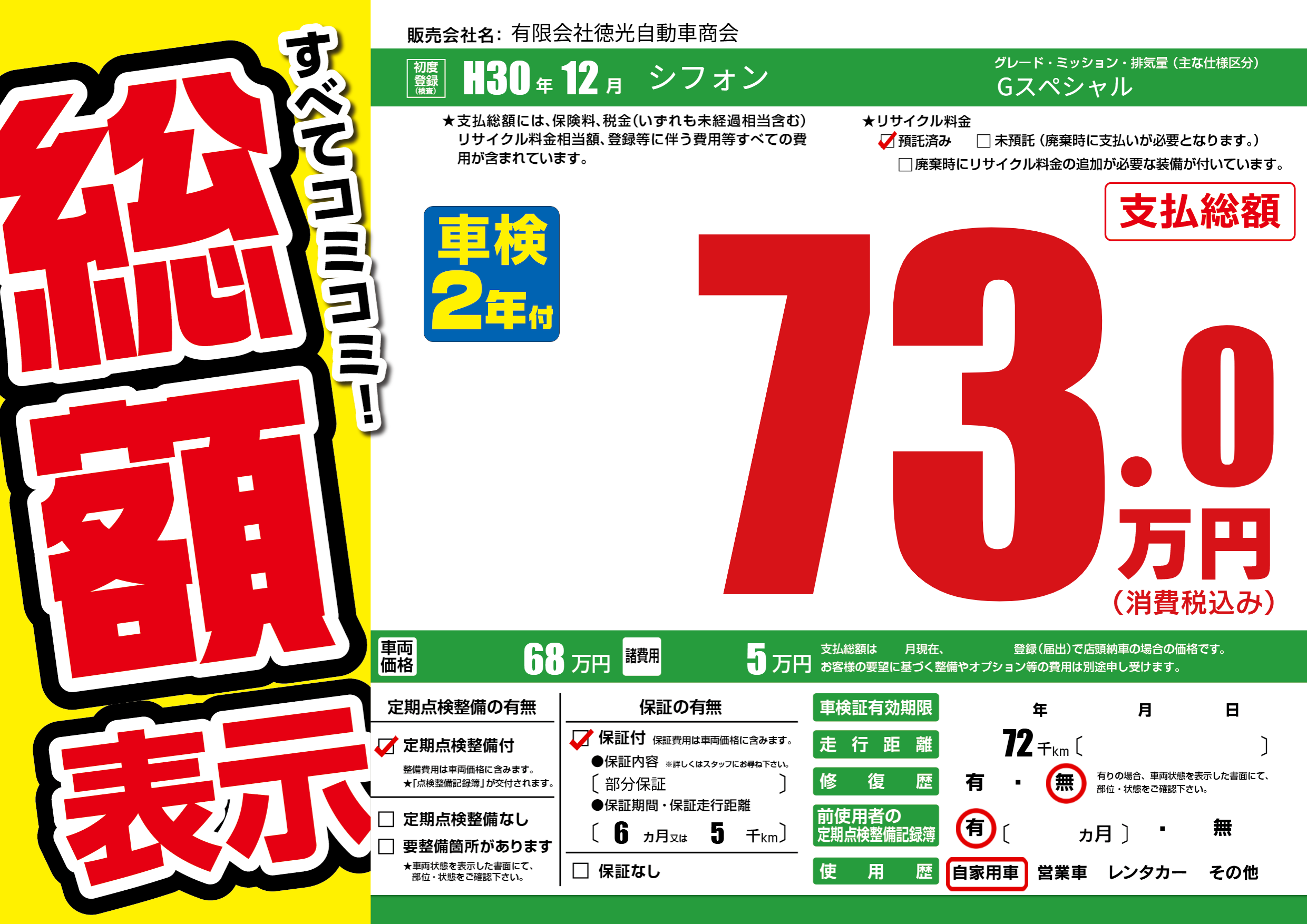 | 定期点検整備 | 定期点検整備あり | ||