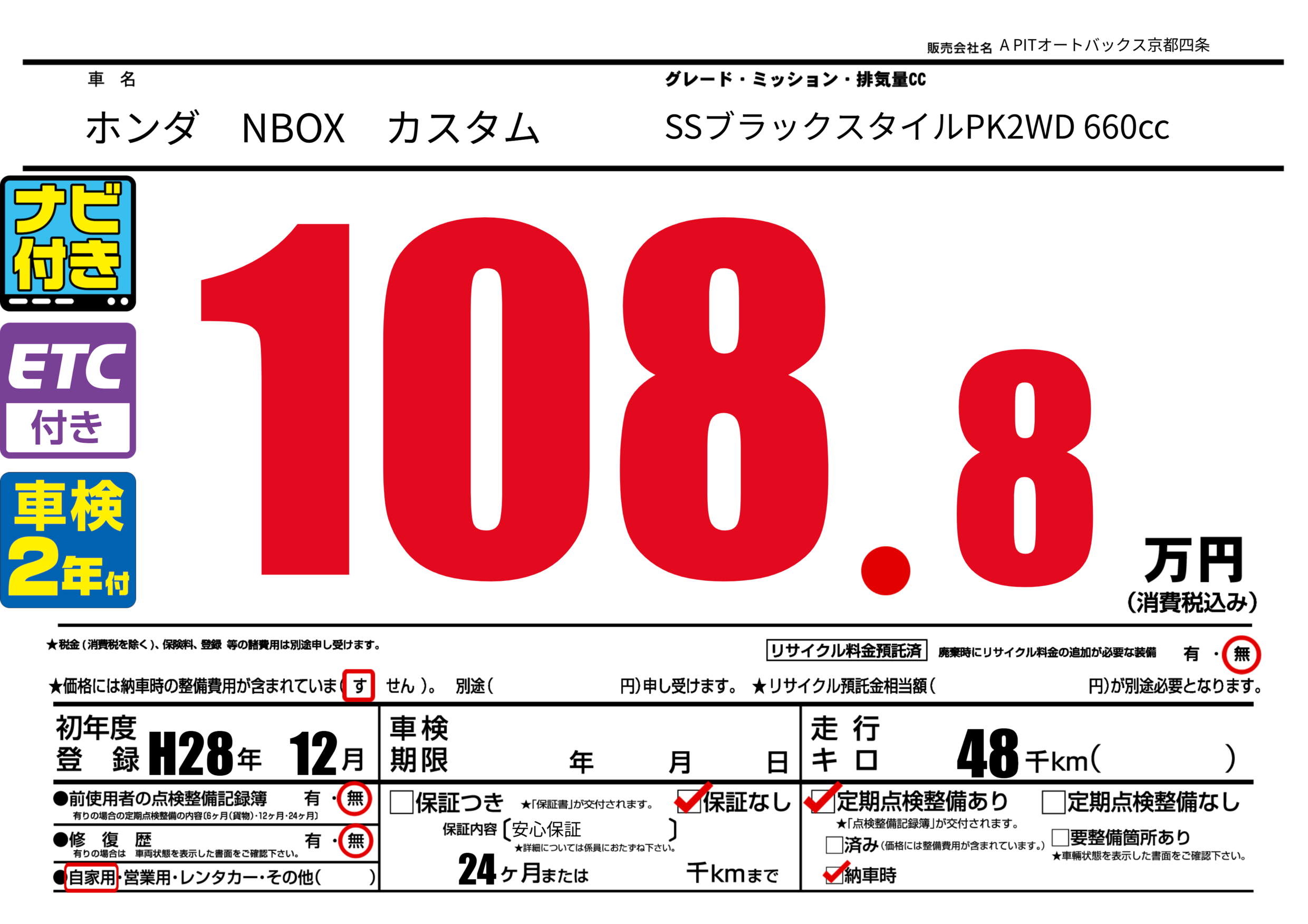 | 走行キロ | 4.8万km | 初年度登録 | H28年12月 |