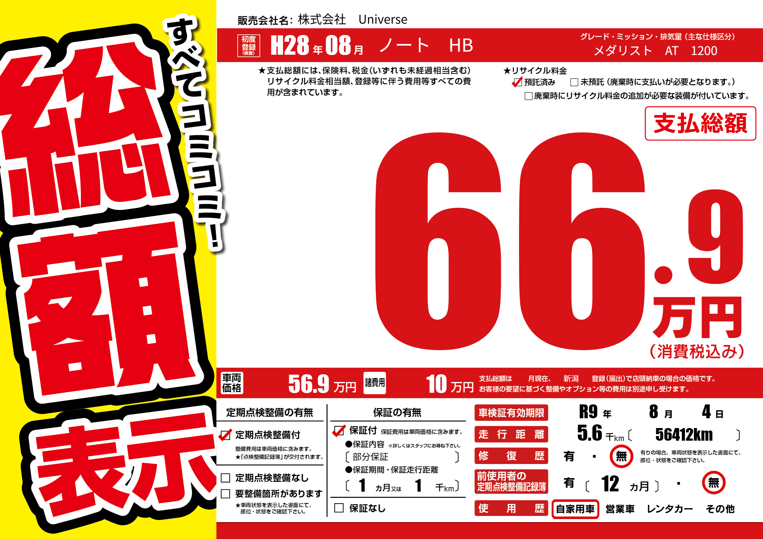 なし | 車検制限 | R9年8月4月 |