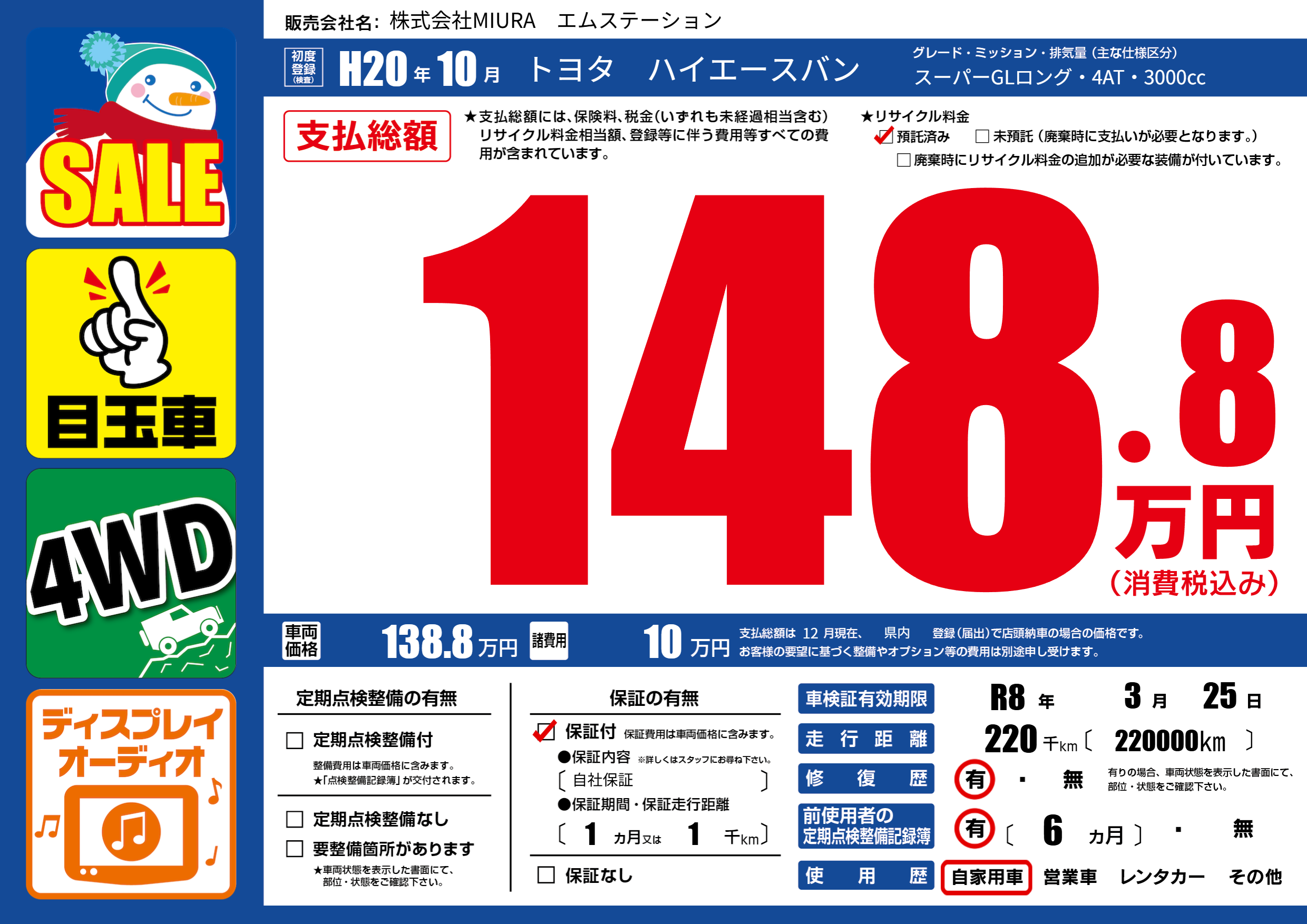 車検制限 R8年 3月 25日