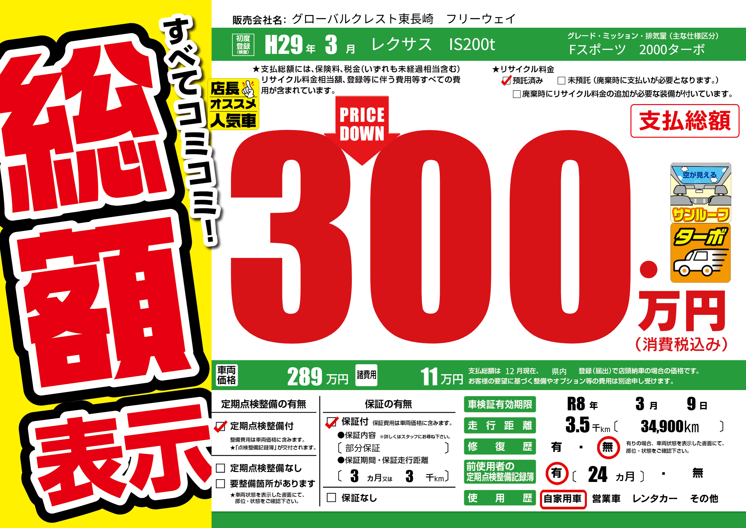 | 走行キロ | 0.3万km | ||