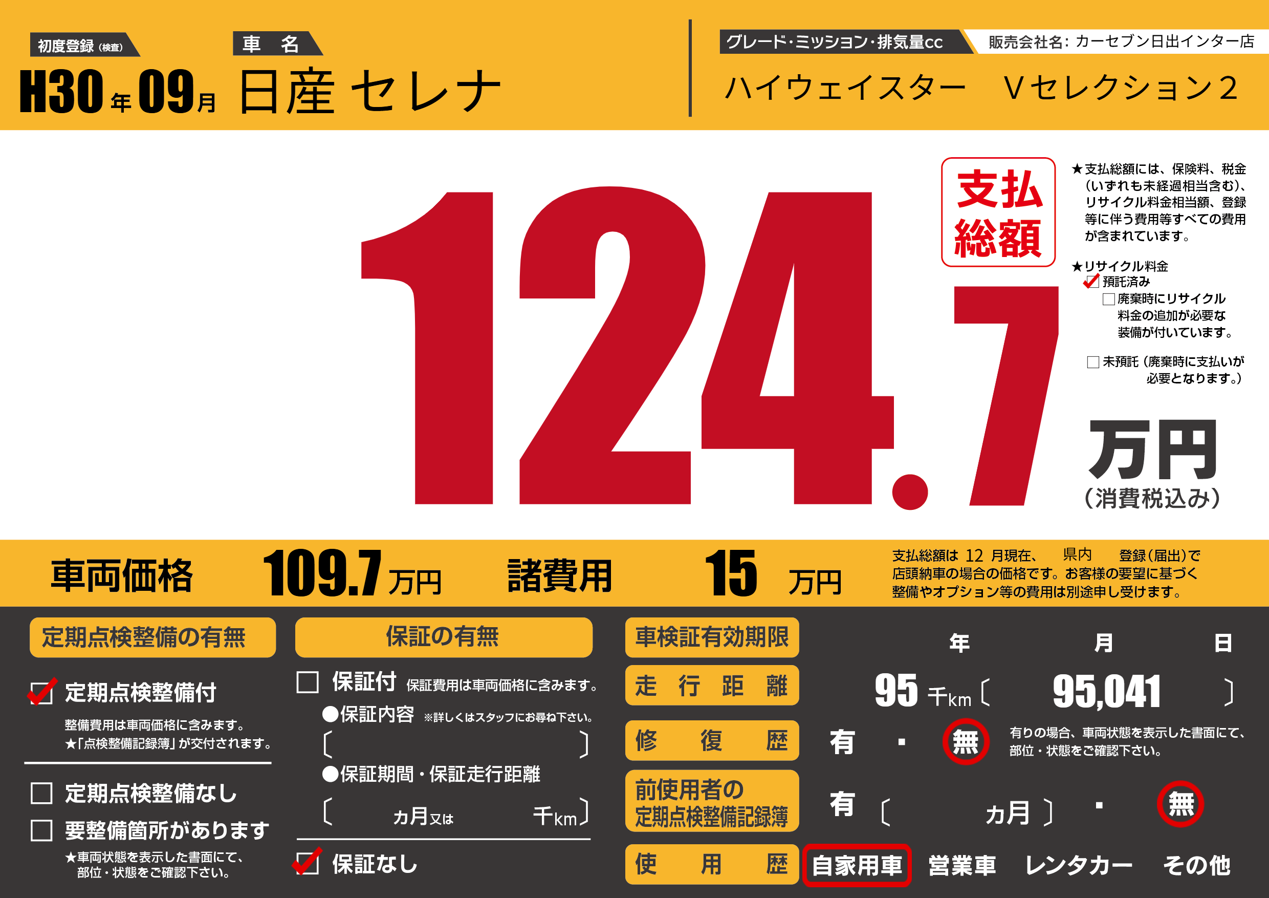 | 定期点検整備 | 定期点検整備あり | ||