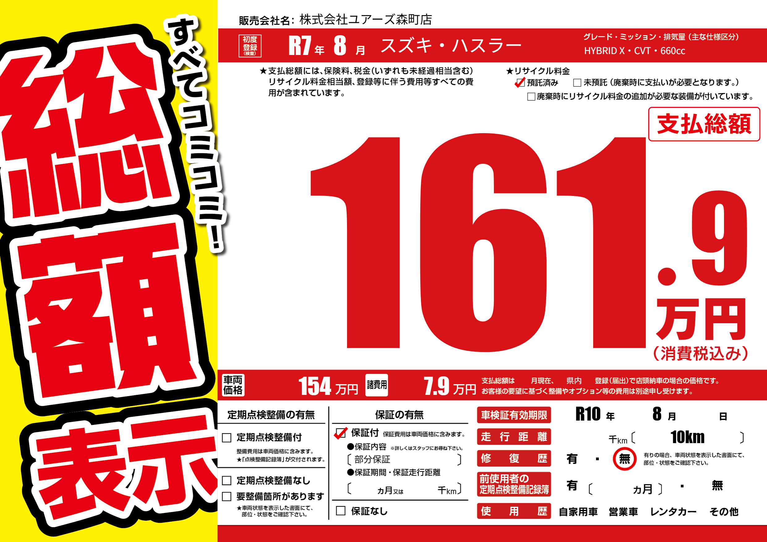 なし | 車検制限 | R10年8月---月 |