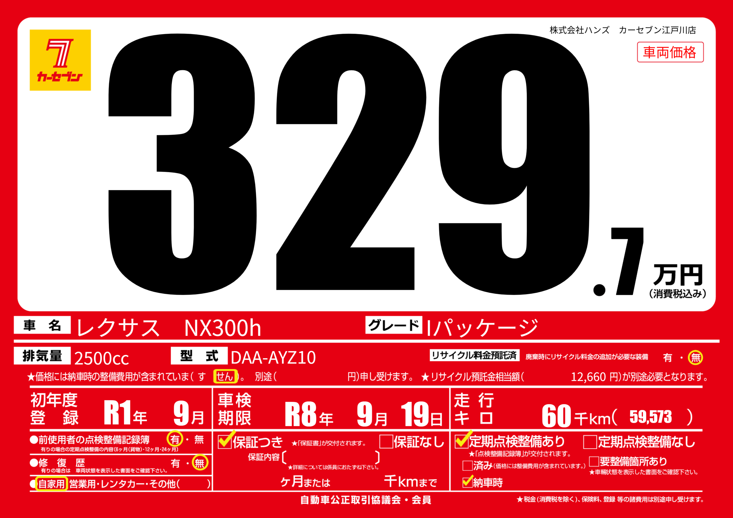 なし | 車検制限 | R8年9月19月 |