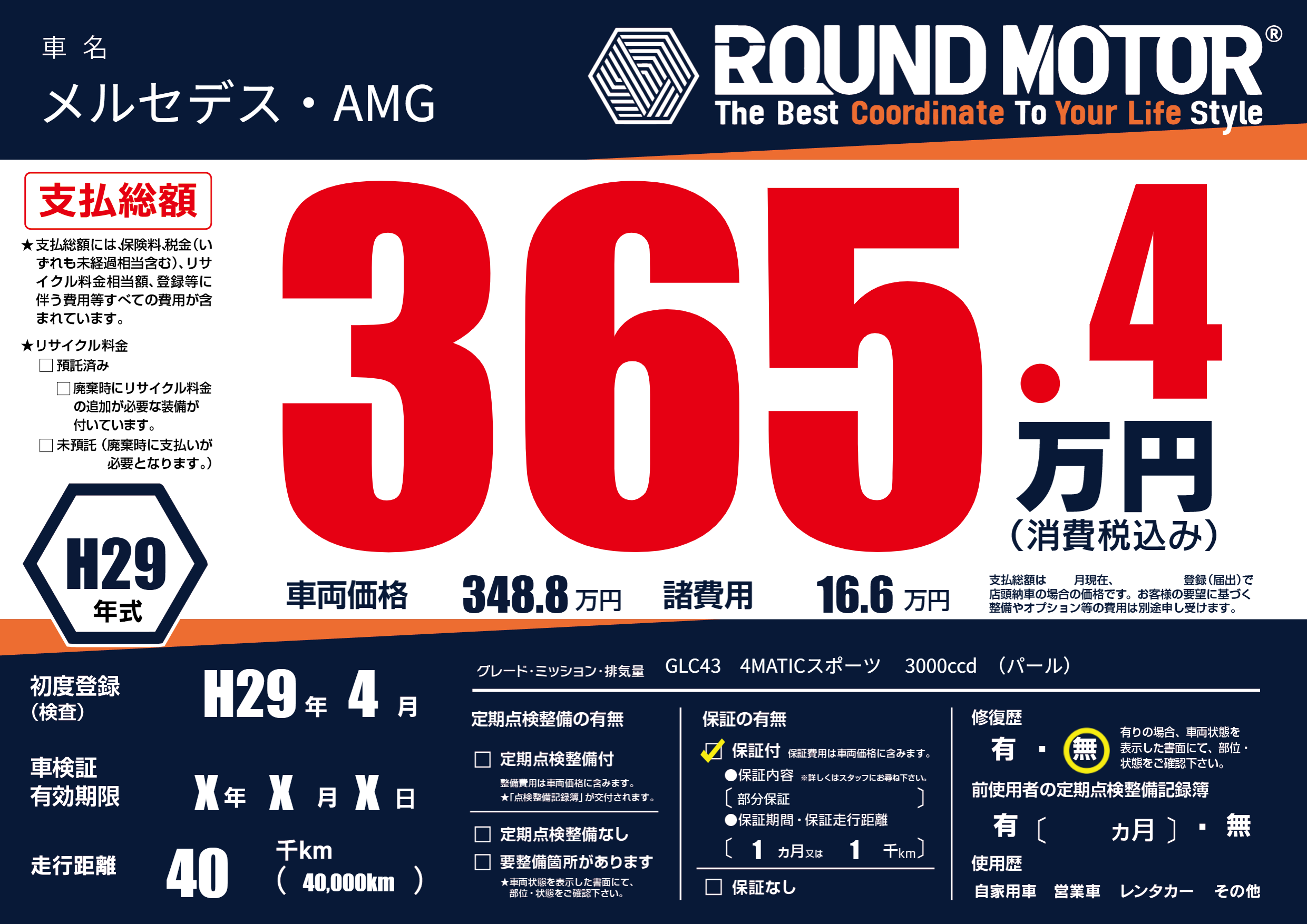 | 車名 | メルセデス・AMG | グレード ミッション 排気量 |
