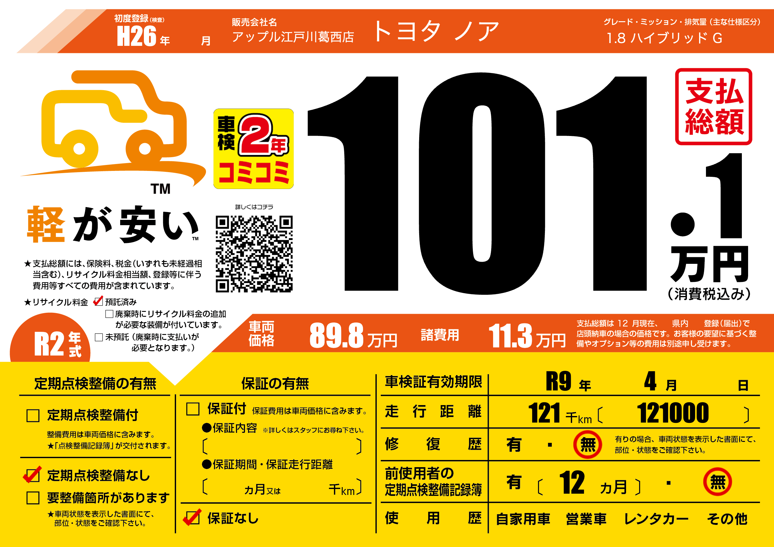 なし | 車検制限 | R9年4月---月 |