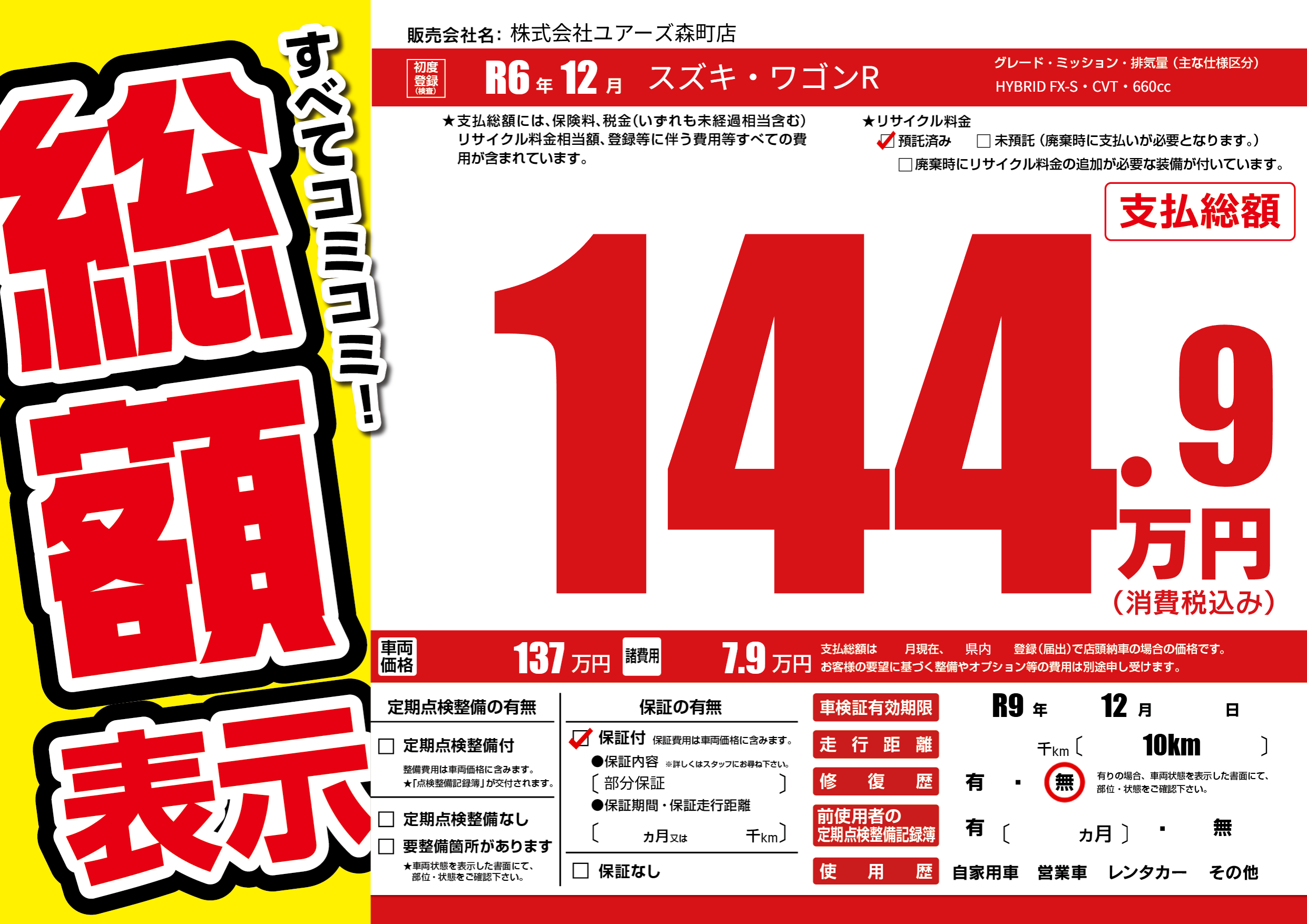 なし | 車検制限 | R9年12月---月 |