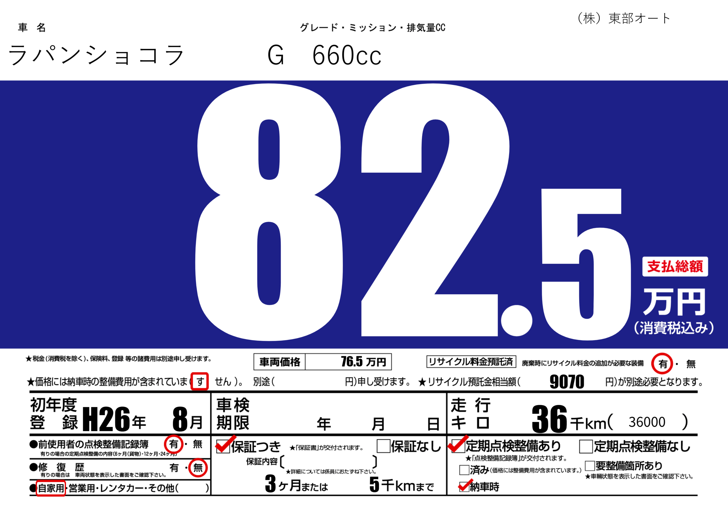 保証付き 保証内容(---) 3ヶ月または(5)千kmまで |