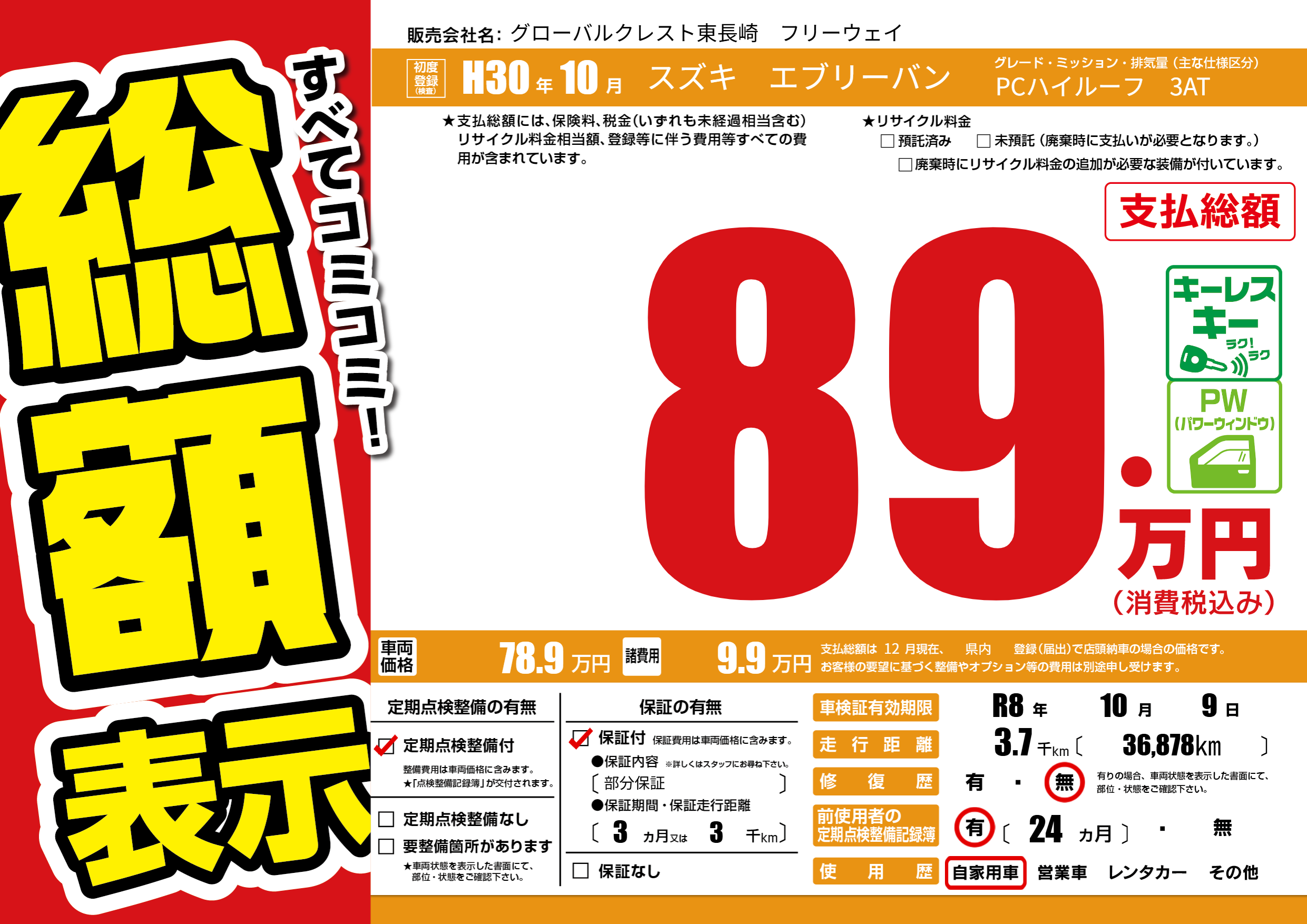 | 車名 | スズキ エブリーバン | グレード ミッション 排気量 |